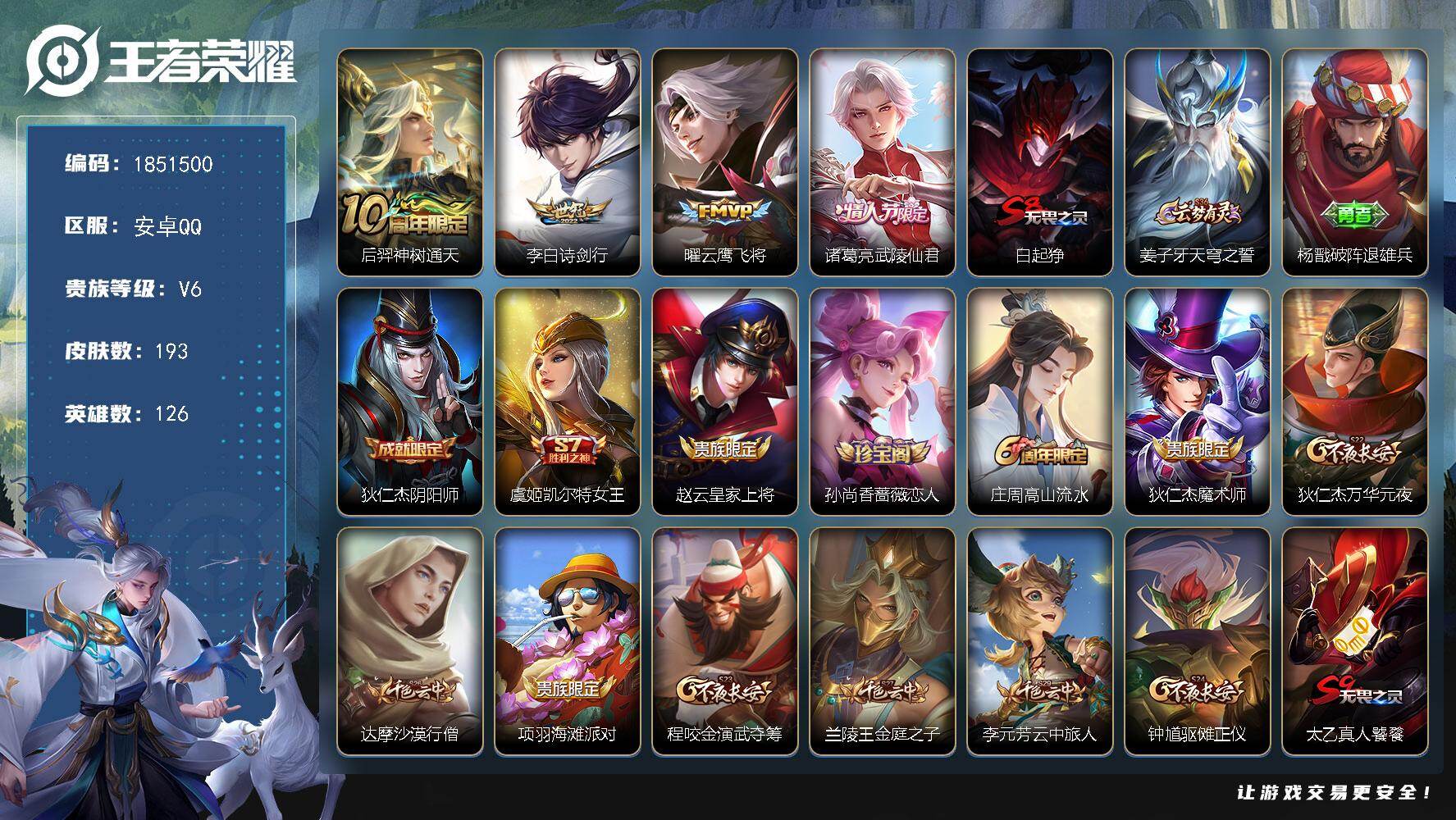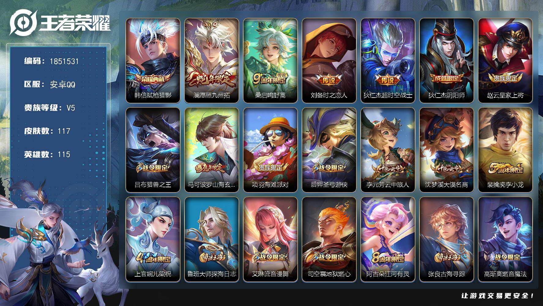 V7 15传说 127英雄 228皮肤 可修改实名 【英雄全皮】敖隐全皮