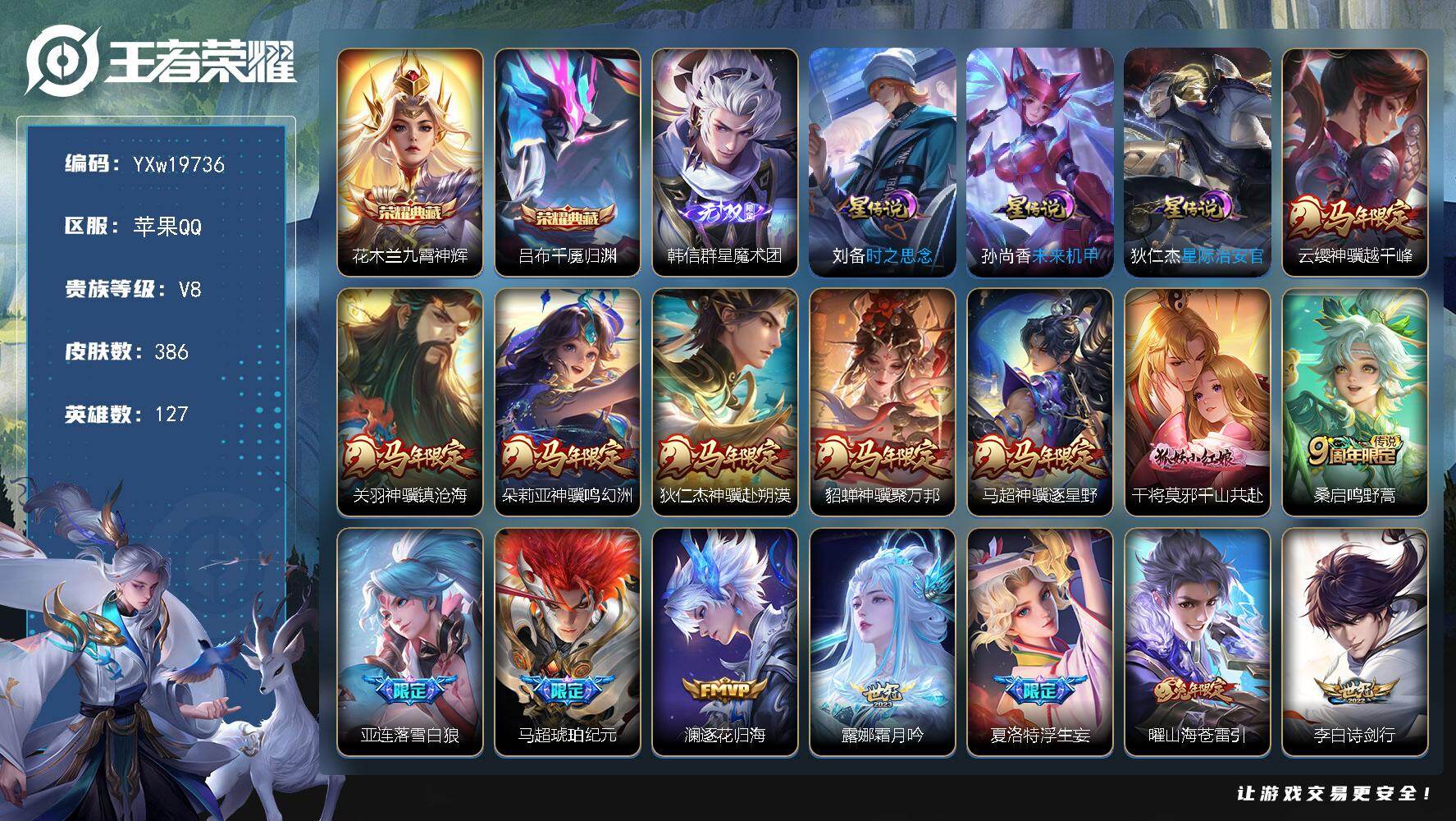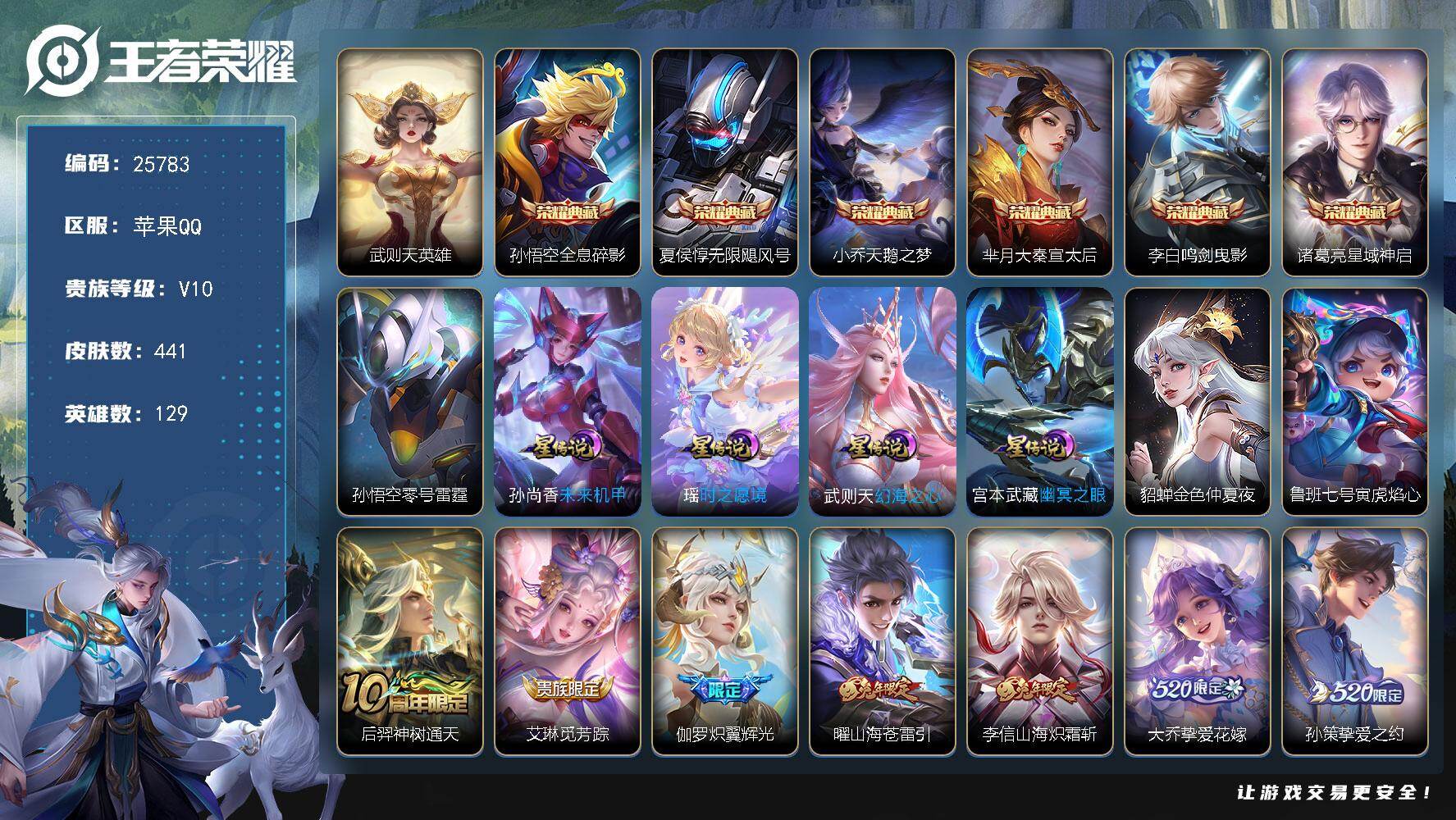 苹果Q-V10-最强王者段位-129英雄-403皮肤-9典藏皮肤-1典藏英雄-2