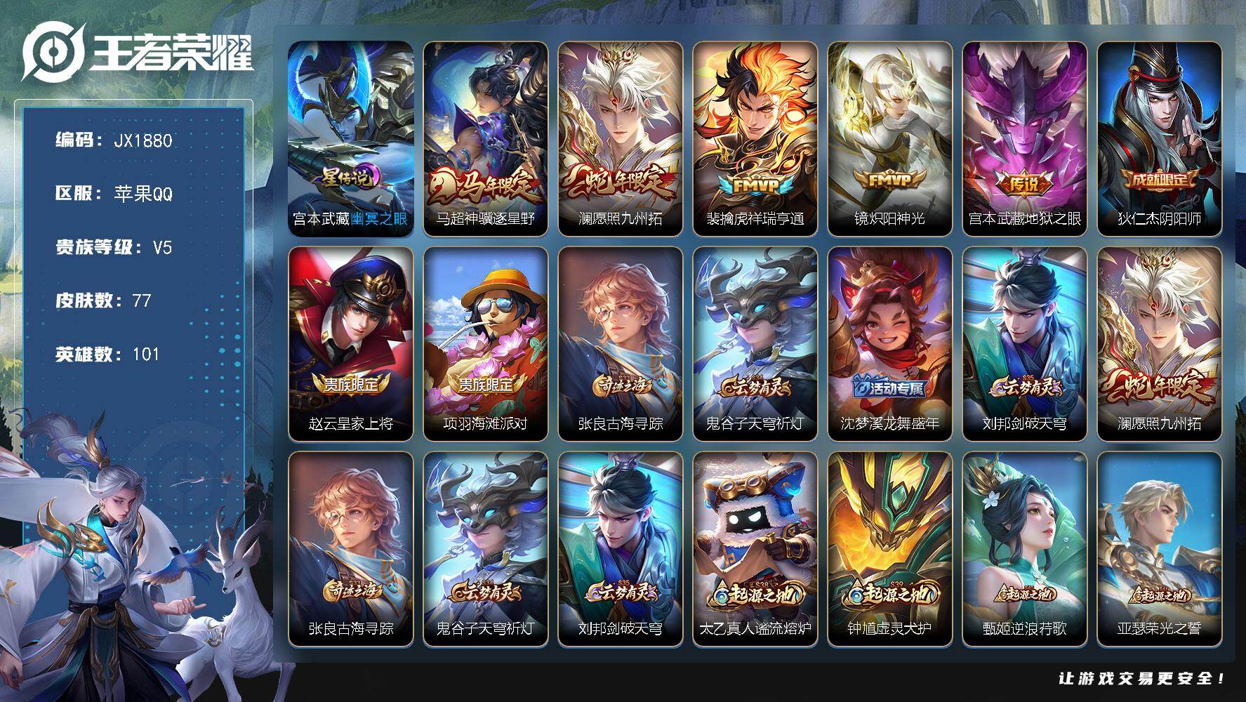 【405皮肤55传说2典藏1珍品3星元 秒换绑不用等】苹果Q-128英雄【2水晶