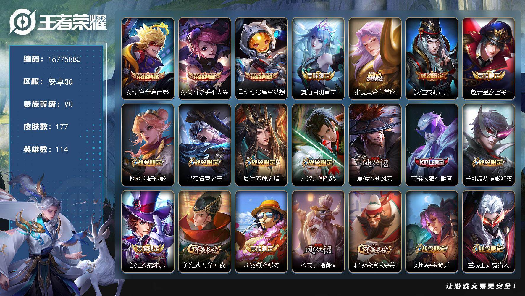 安卓Q-V0-永恒钻石IV段位-114英雄-177皮肤-3典藏皮肤-2传说-46