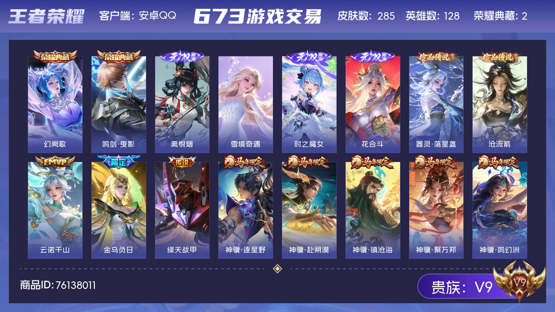 V9 皮肤285 英雄128 荣耀王者 荣耀典藏2 无双皮肤4 珍品传说2 传说40