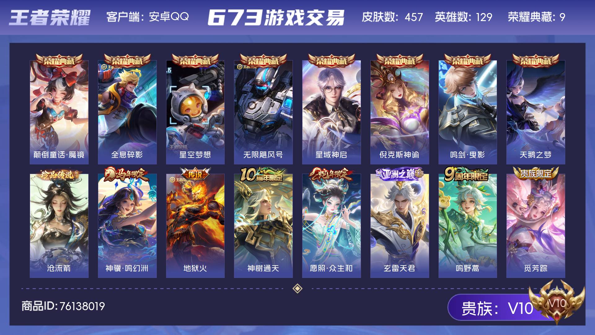 V10 皮肤457 英雄129 绝世王者 荣耀典藏9 珍品传说1 传说52
