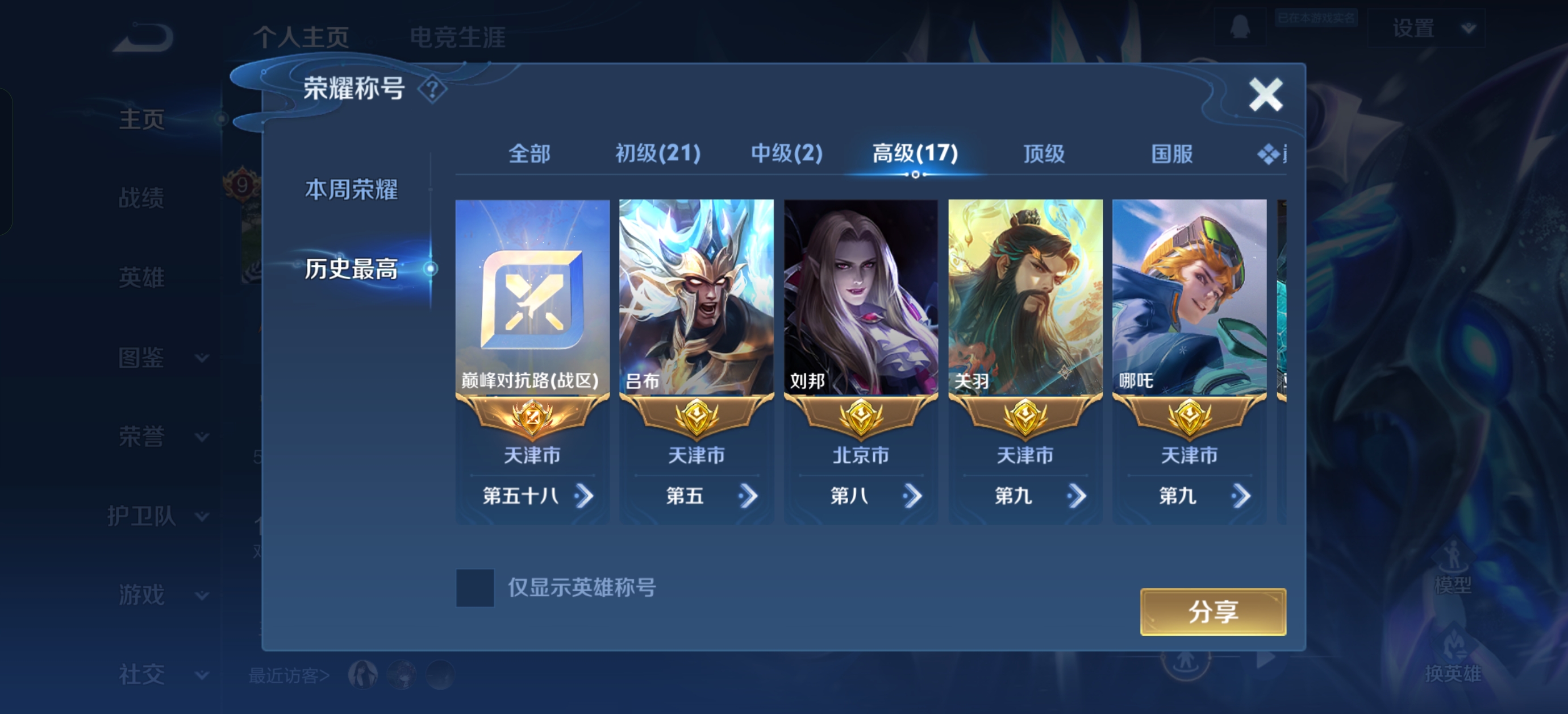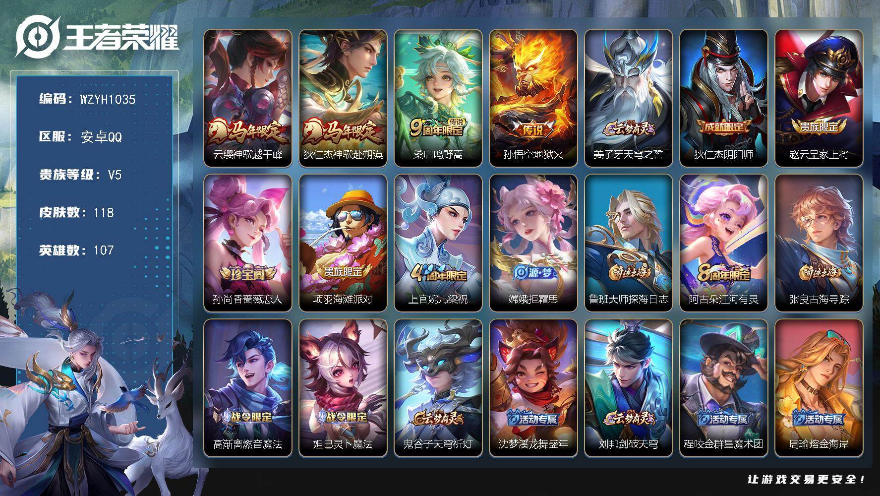 贵族5/皮肤118/传说4/史诗24/英雄107/孙权全皮/