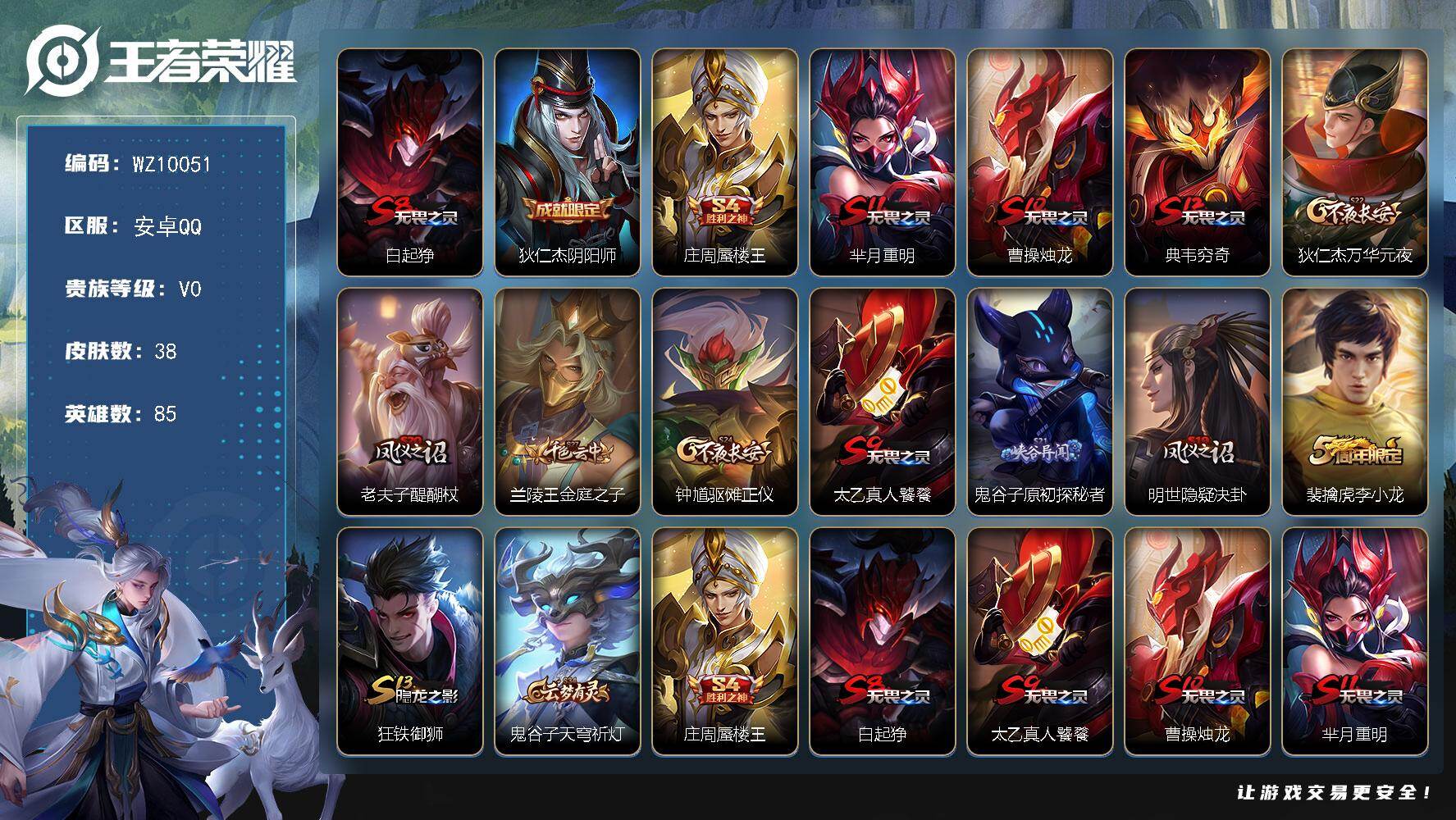 安卓Q-V0-尊贵铂金IV段位-85英雄-38皮肤-3史诗【限定皮肤】:白起