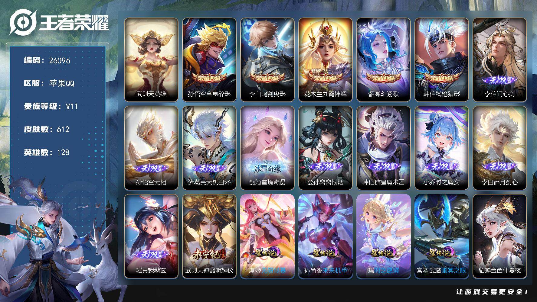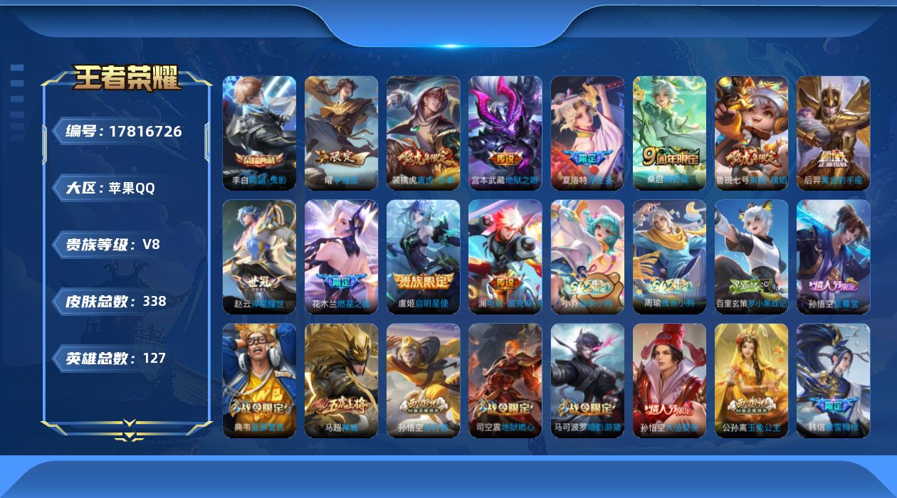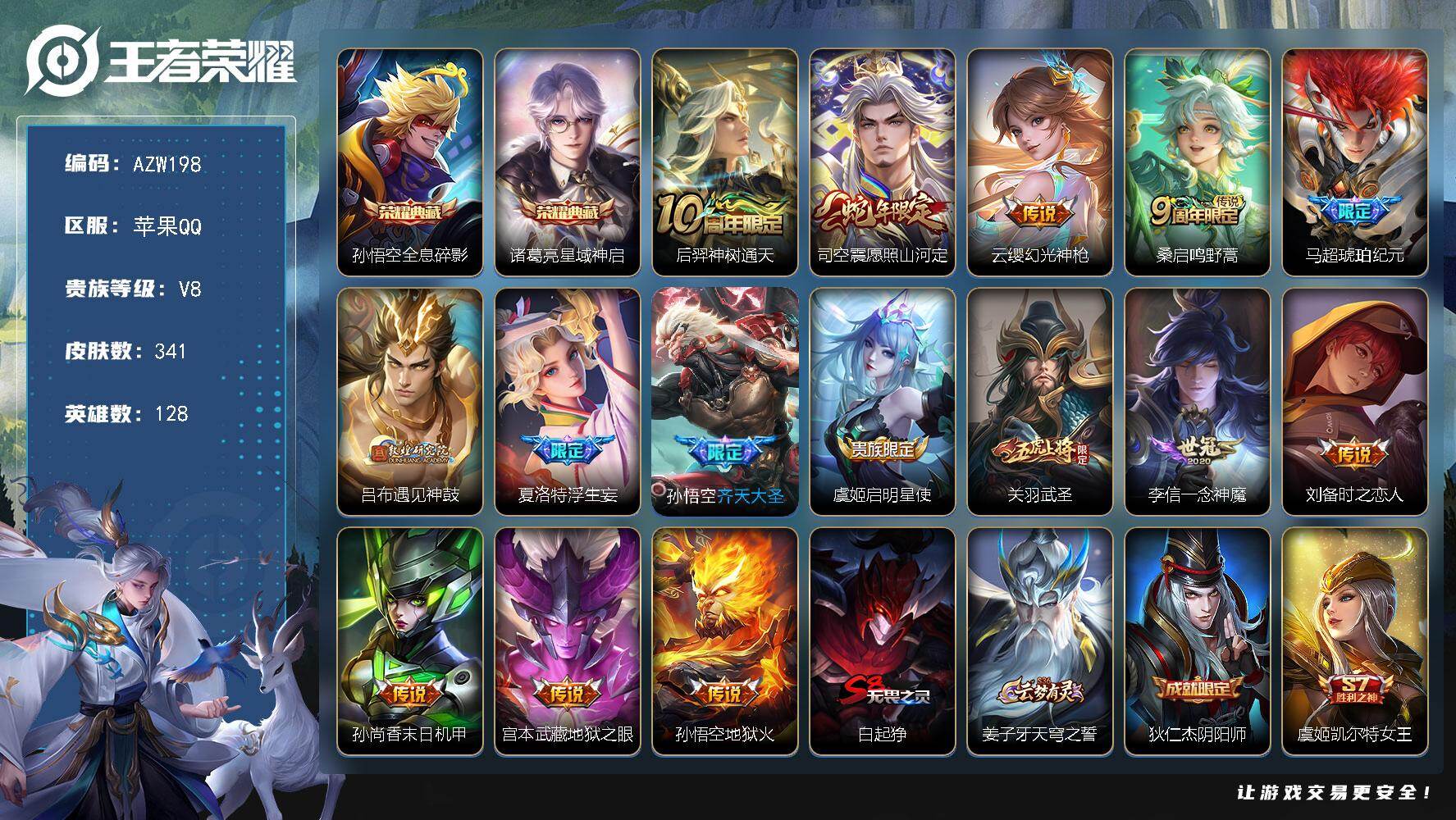 【AZW198】苹果Q-V8-至尊星耀III段位-128英雄-341皮肤-2典