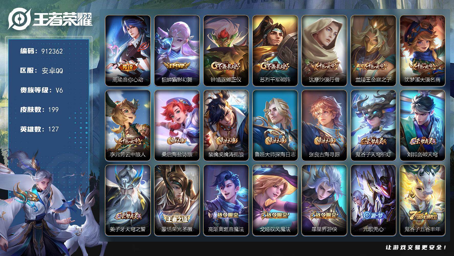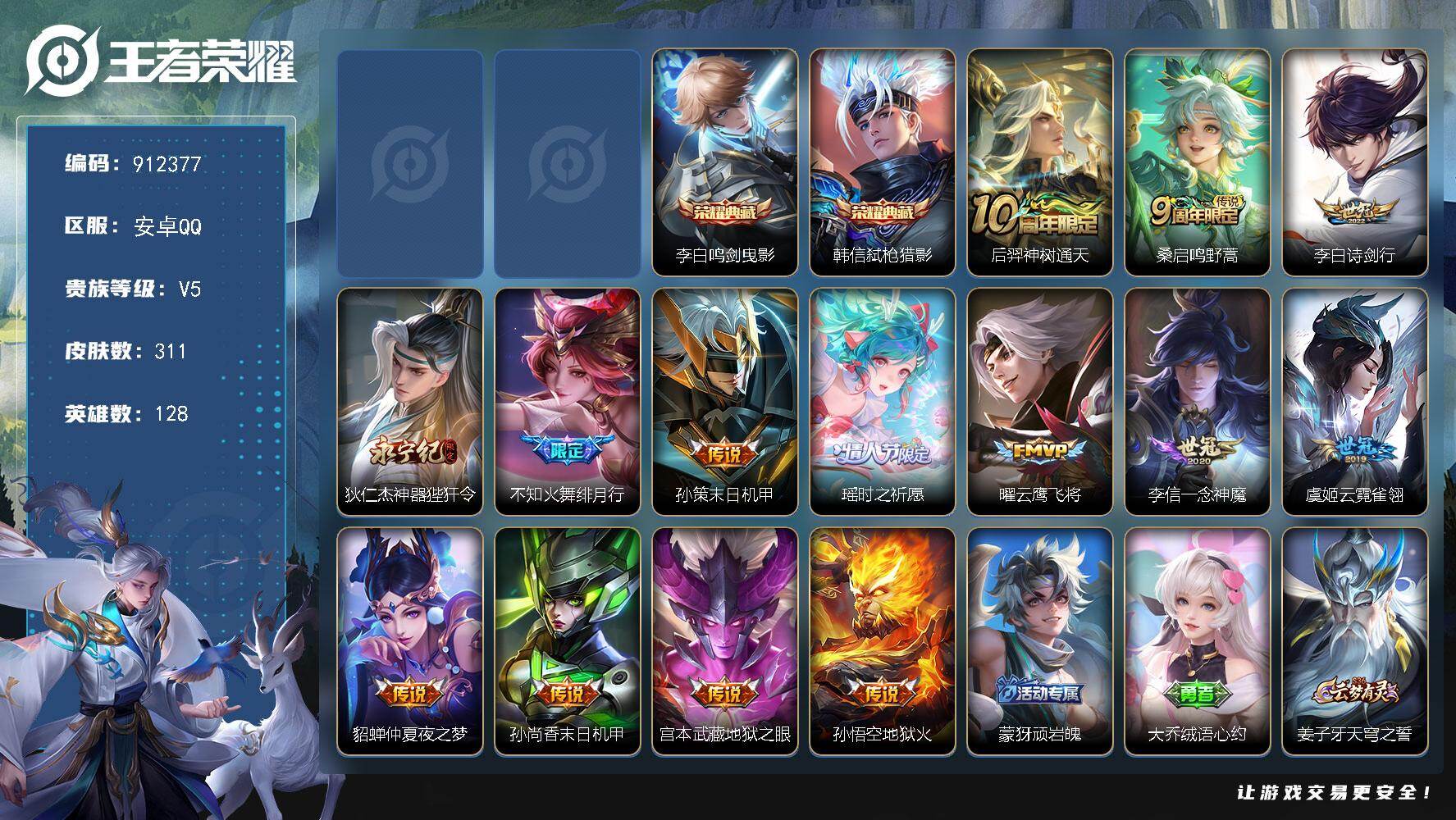 贵族7-贵族积分43943-311皮2典藏14传说-4个英雄全皮 安卓手Q1