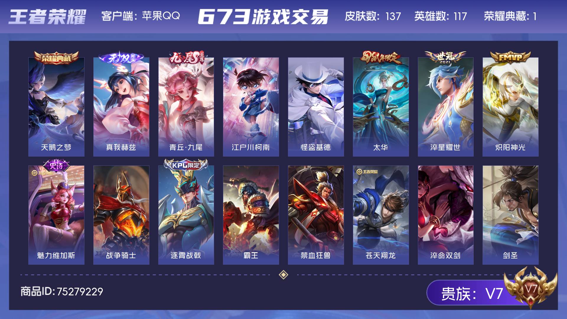 V7 皮肤137 英雄117 尊贵铂金 荣耀典藏1 无双皮肤2 珍品传说2 传说3 其他皮肤135
