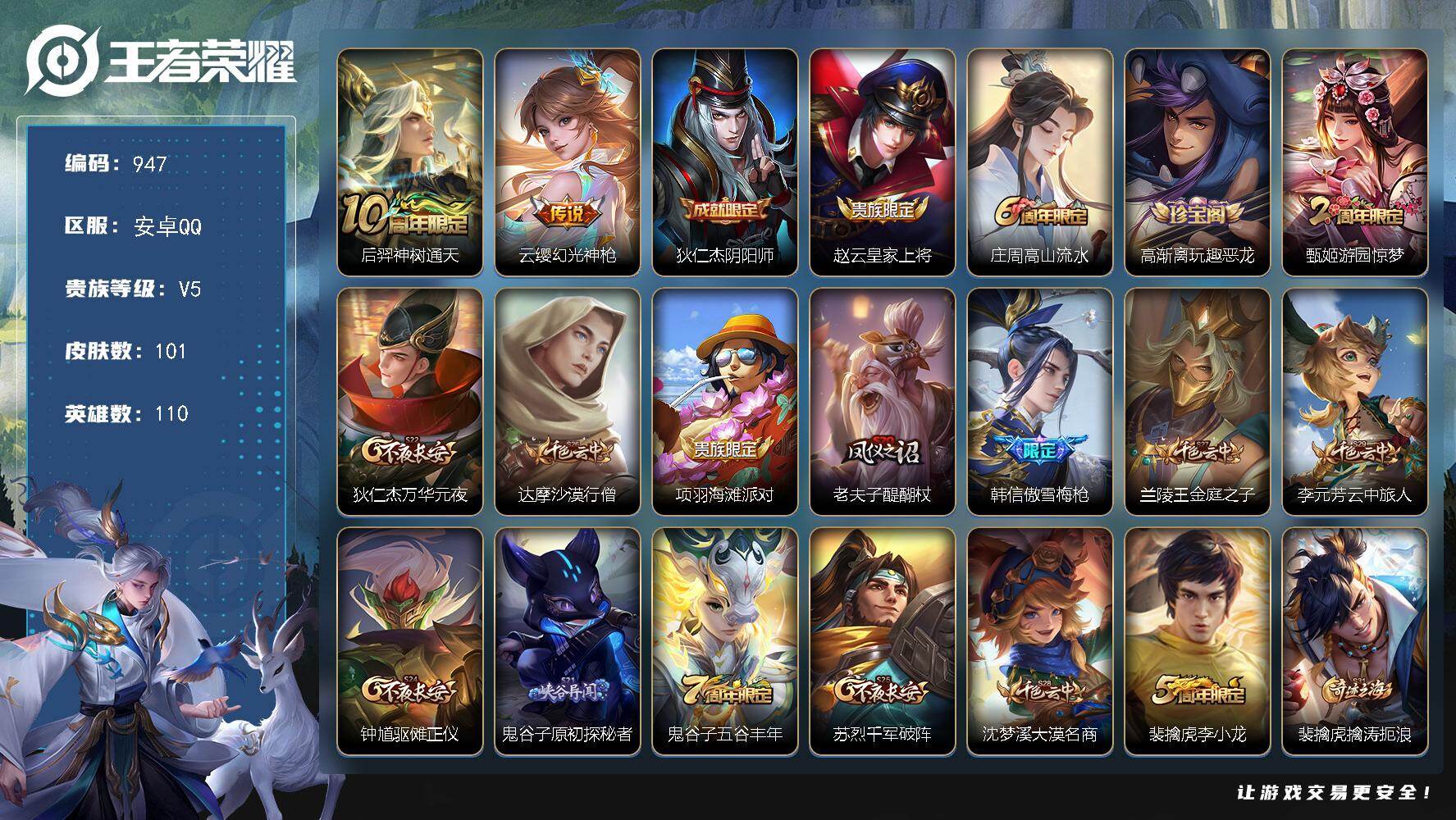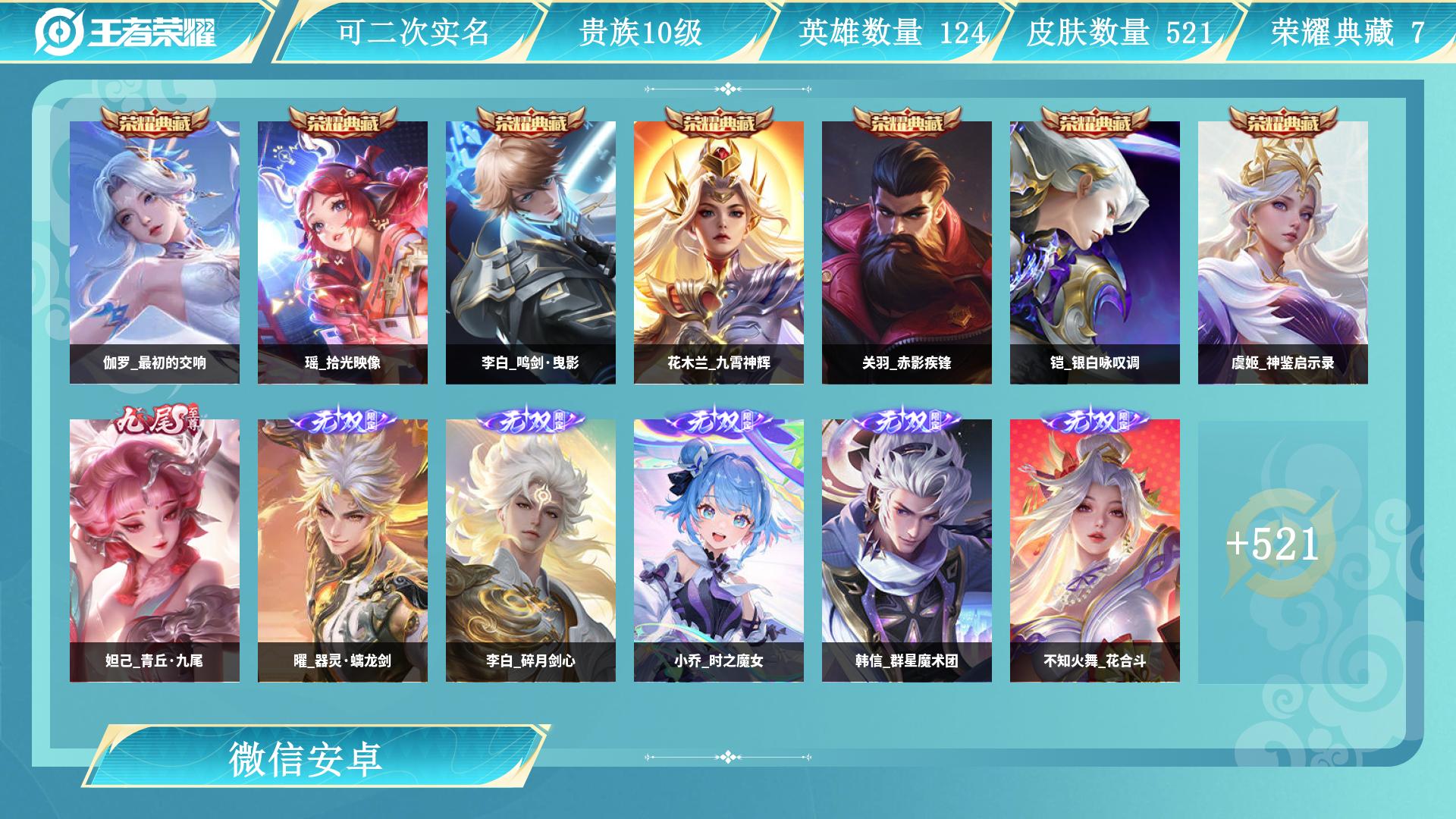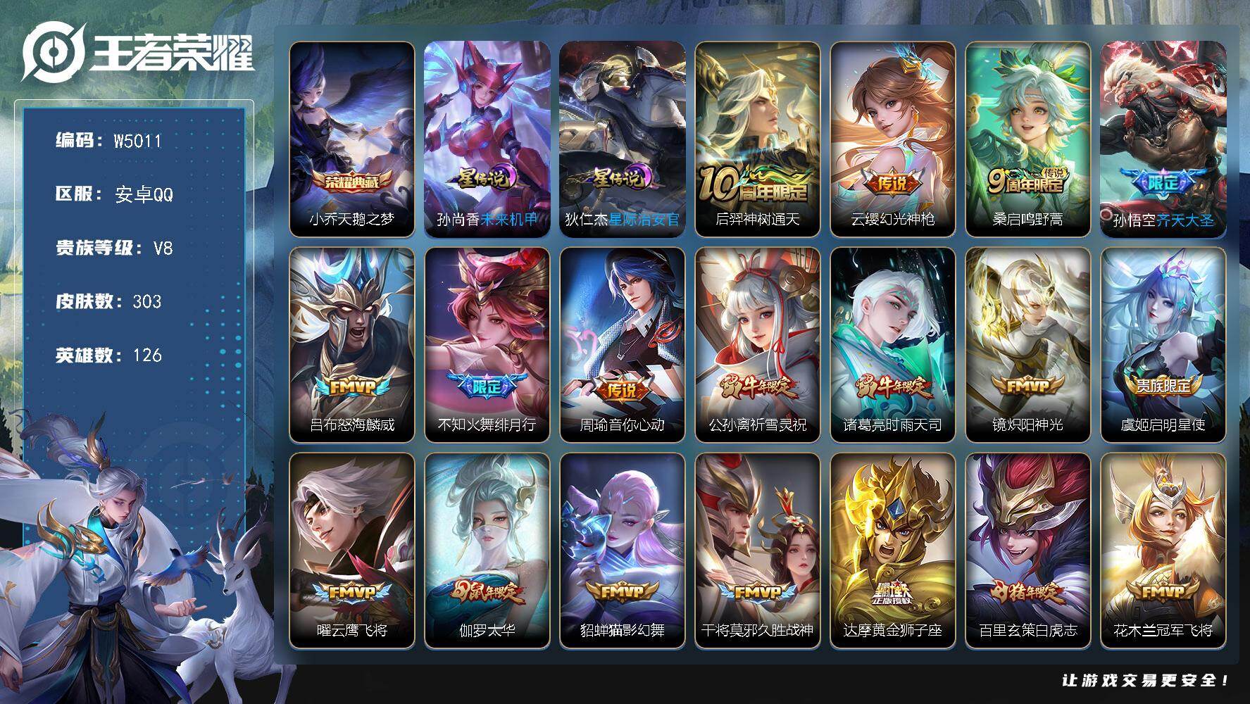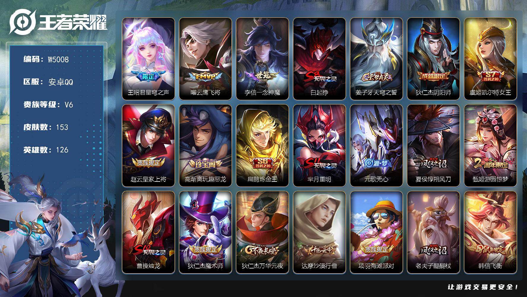 【W5008】安卓Q区-可二次-贵6-126英雄-153皮肤-3传说-33史诗