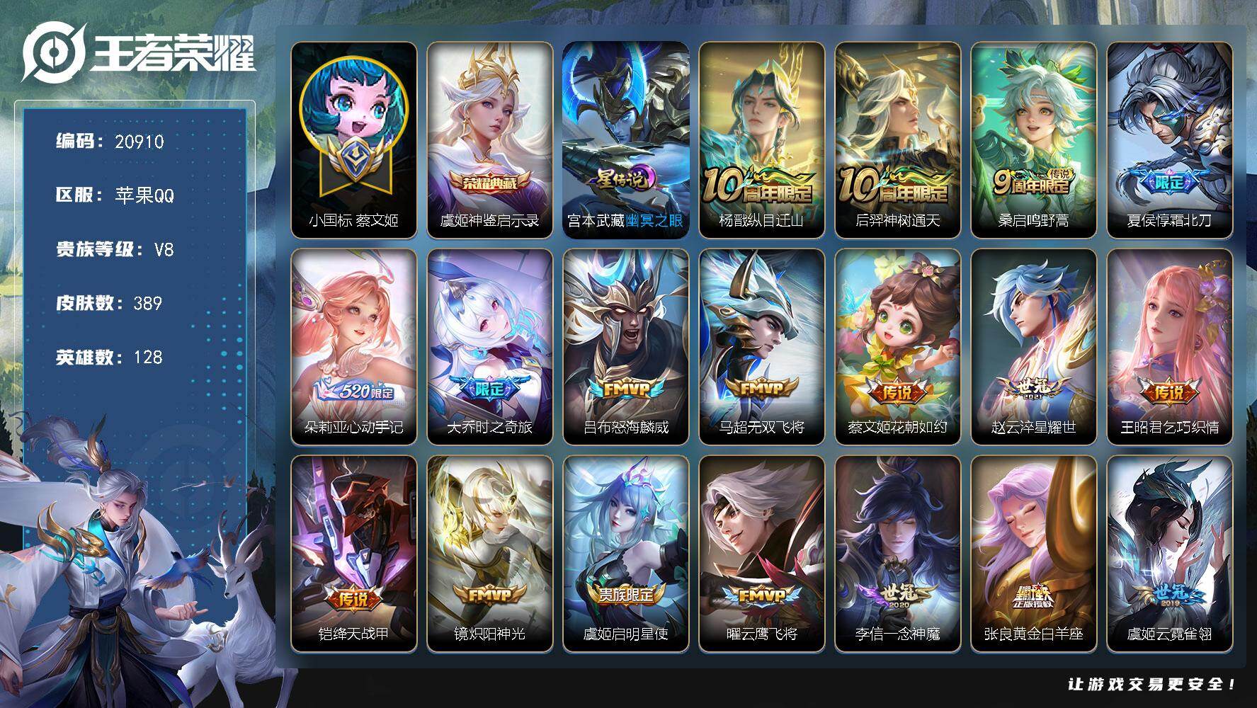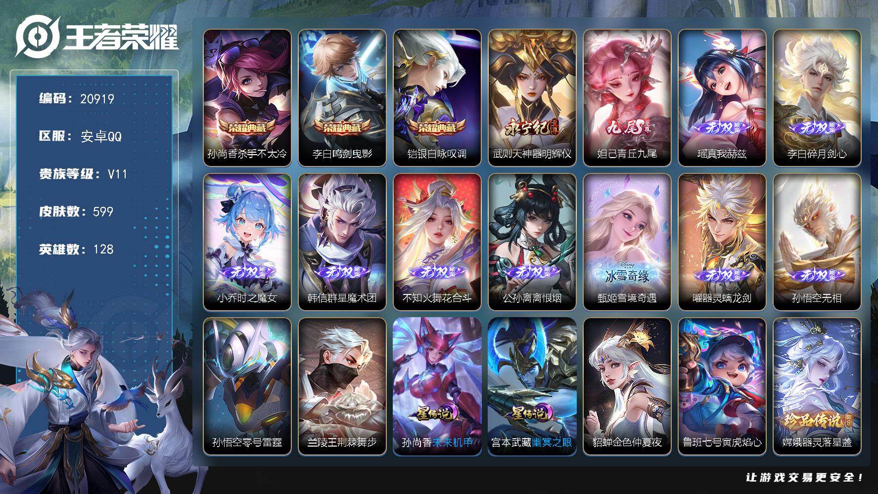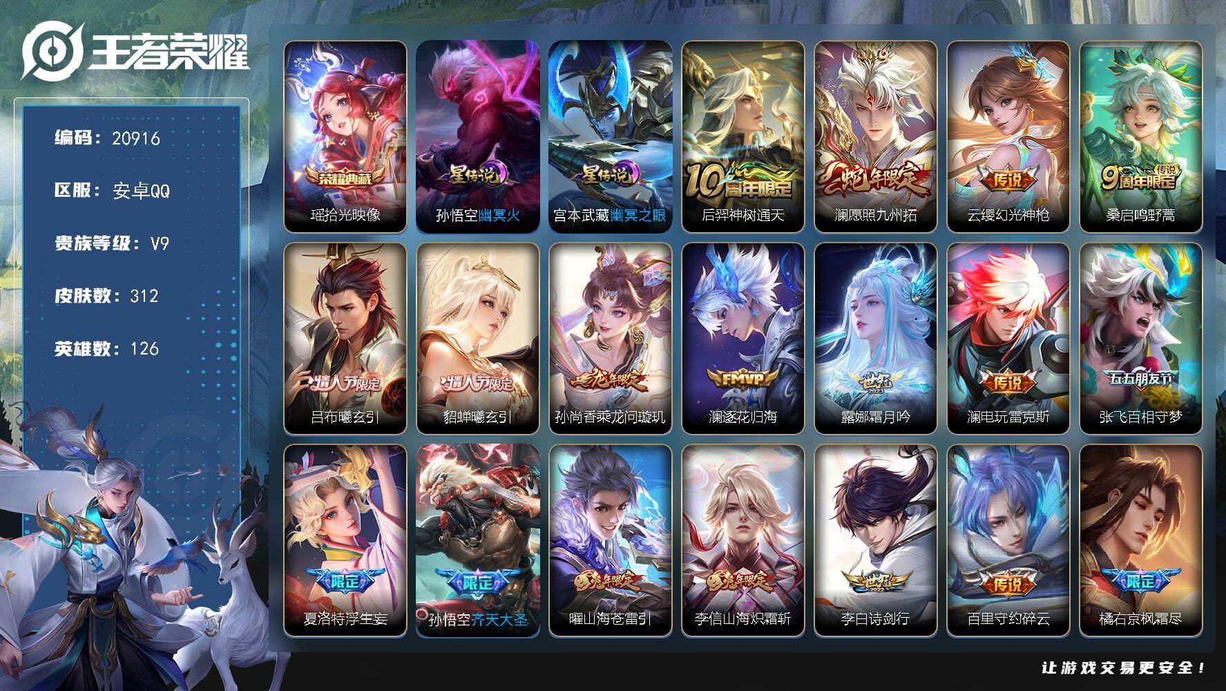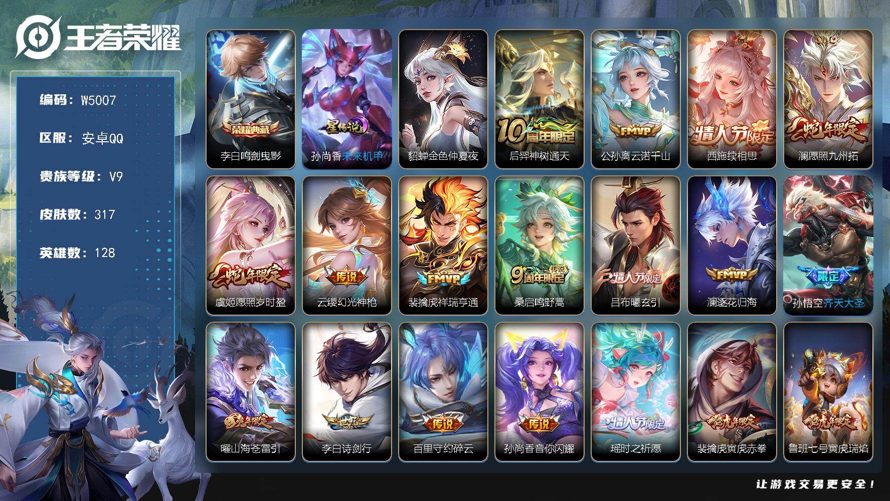 【W5007】安卓Q区-可二次-贵9-128英雄-317皮肤-1典藏-31传说