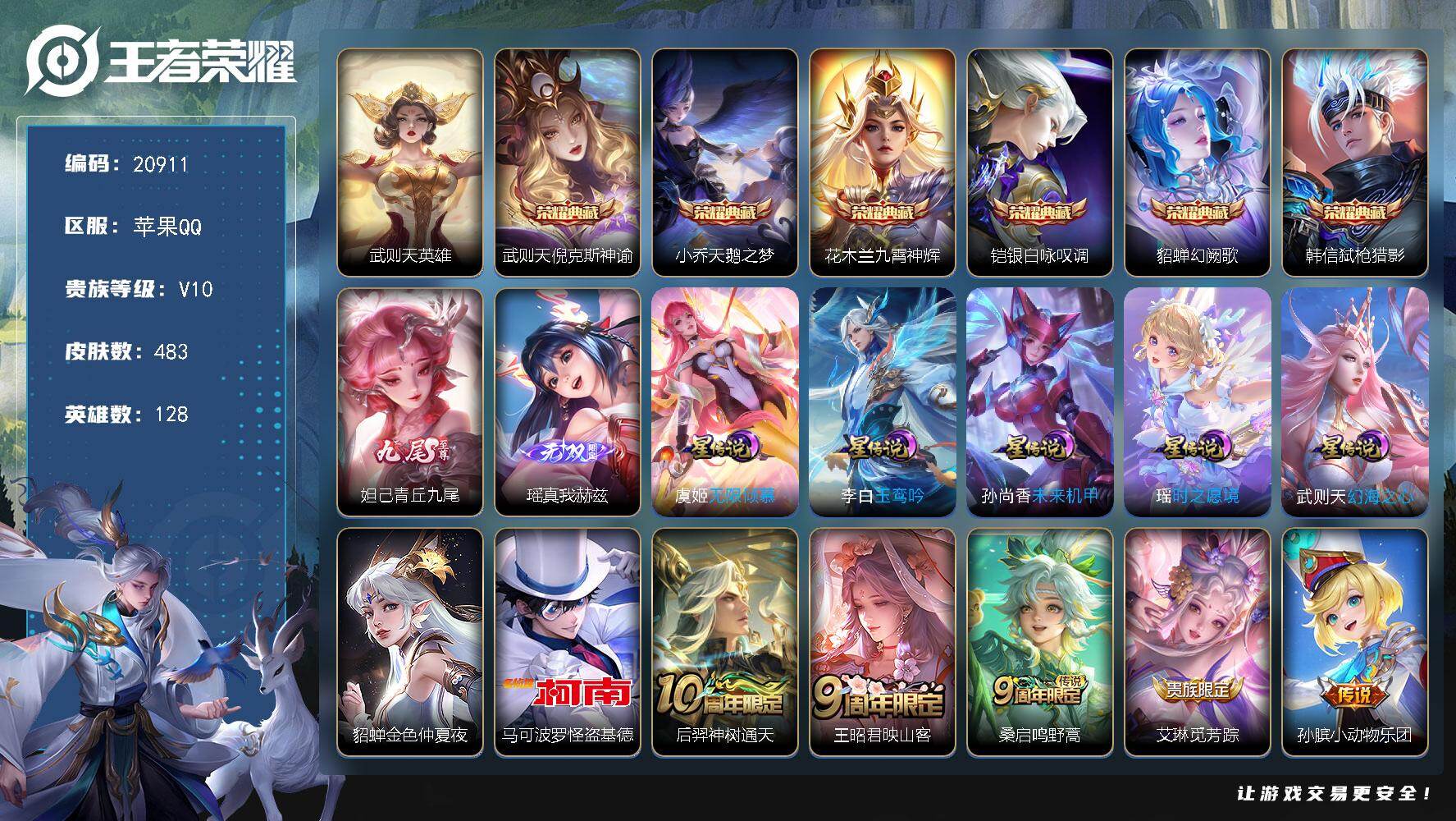 可换绑【V10精品女号 王昭君全皮 7典藏含武则天英雄 瑶妲己无双 怪盗基德