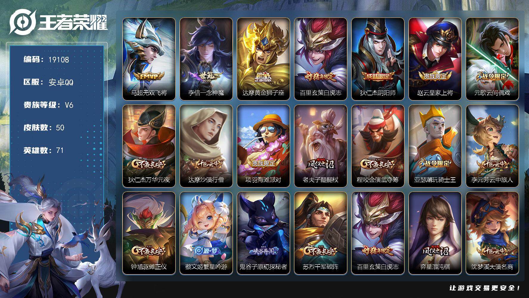 王者荣耀账号,皮肤129款,英雄129个,图鉴16级,账号干净没异常,安全放心,支持打标