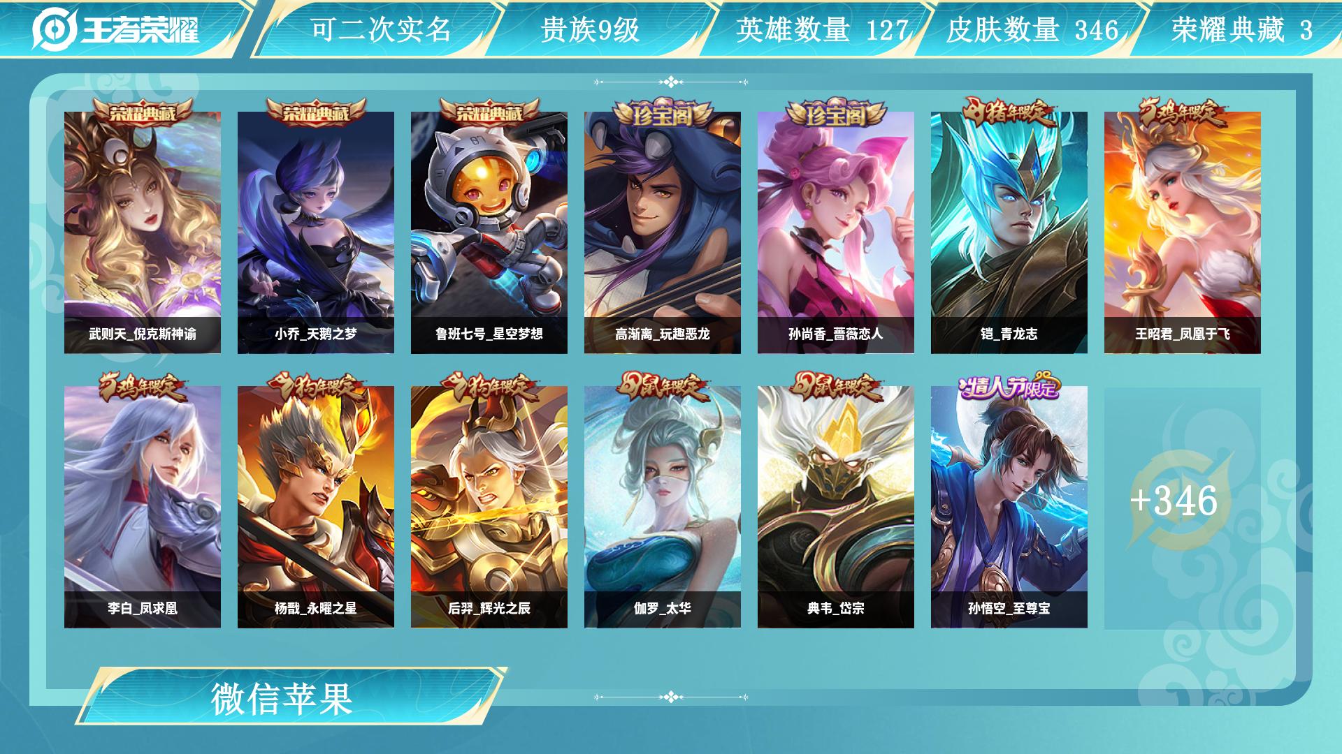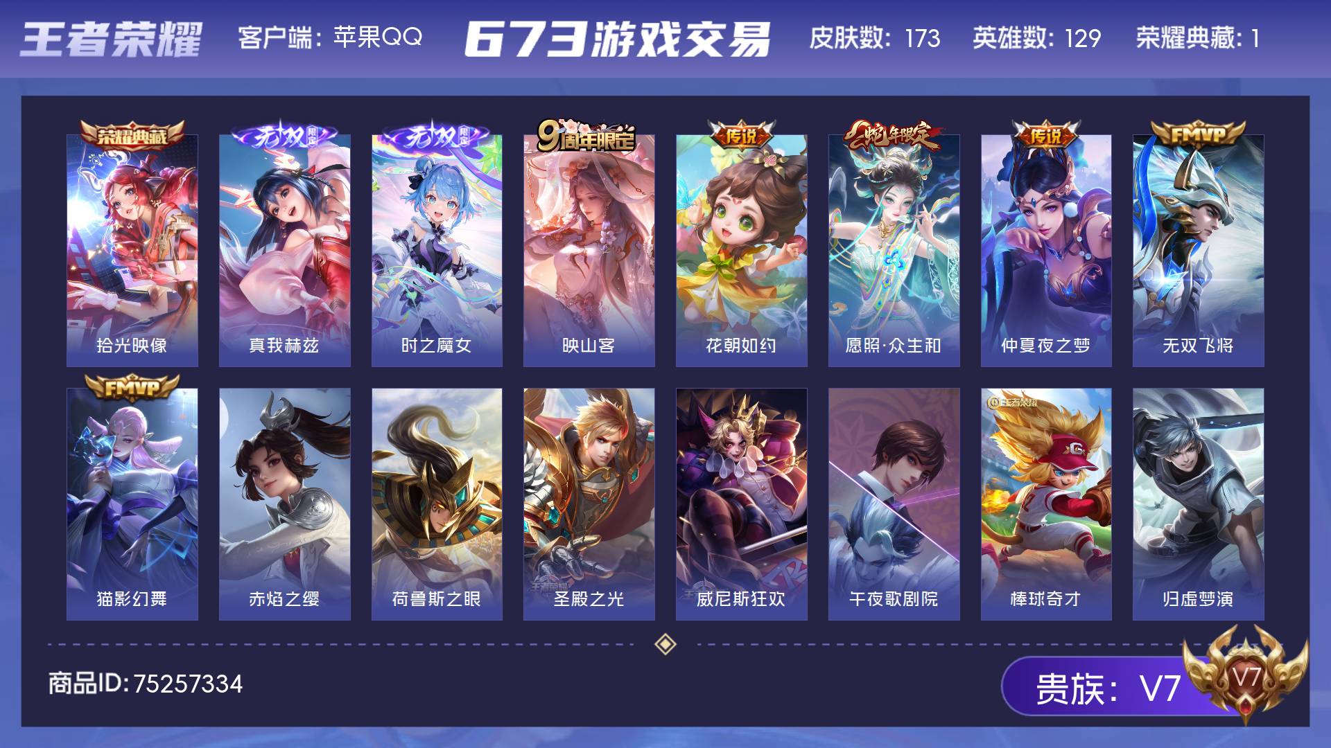 V7 皮肤173 英雄129 非凡王者 荣耀典藏1 无双皮肤2 传说6 其他皮肤170