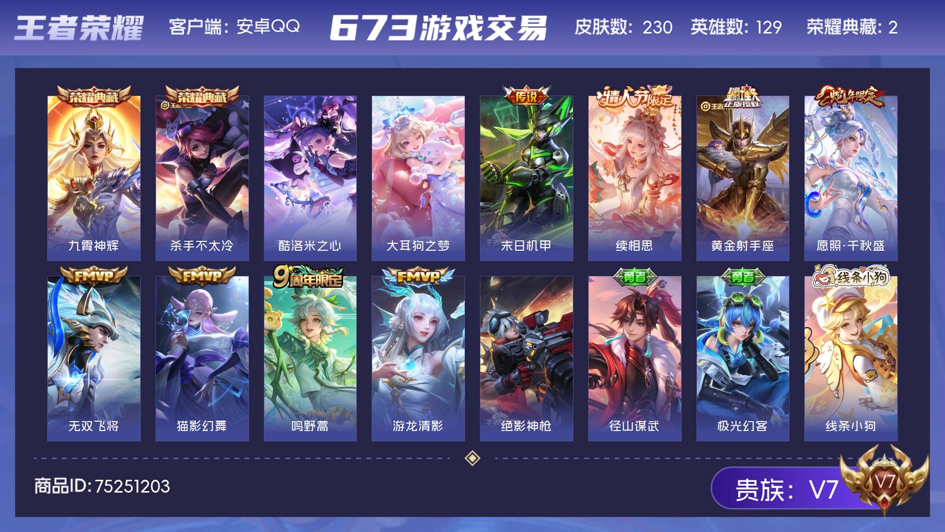 V7 皮肤230 英雄129 永恒钻石 荣耀典藏2 珍品传说2 传说8 其他皮肤223