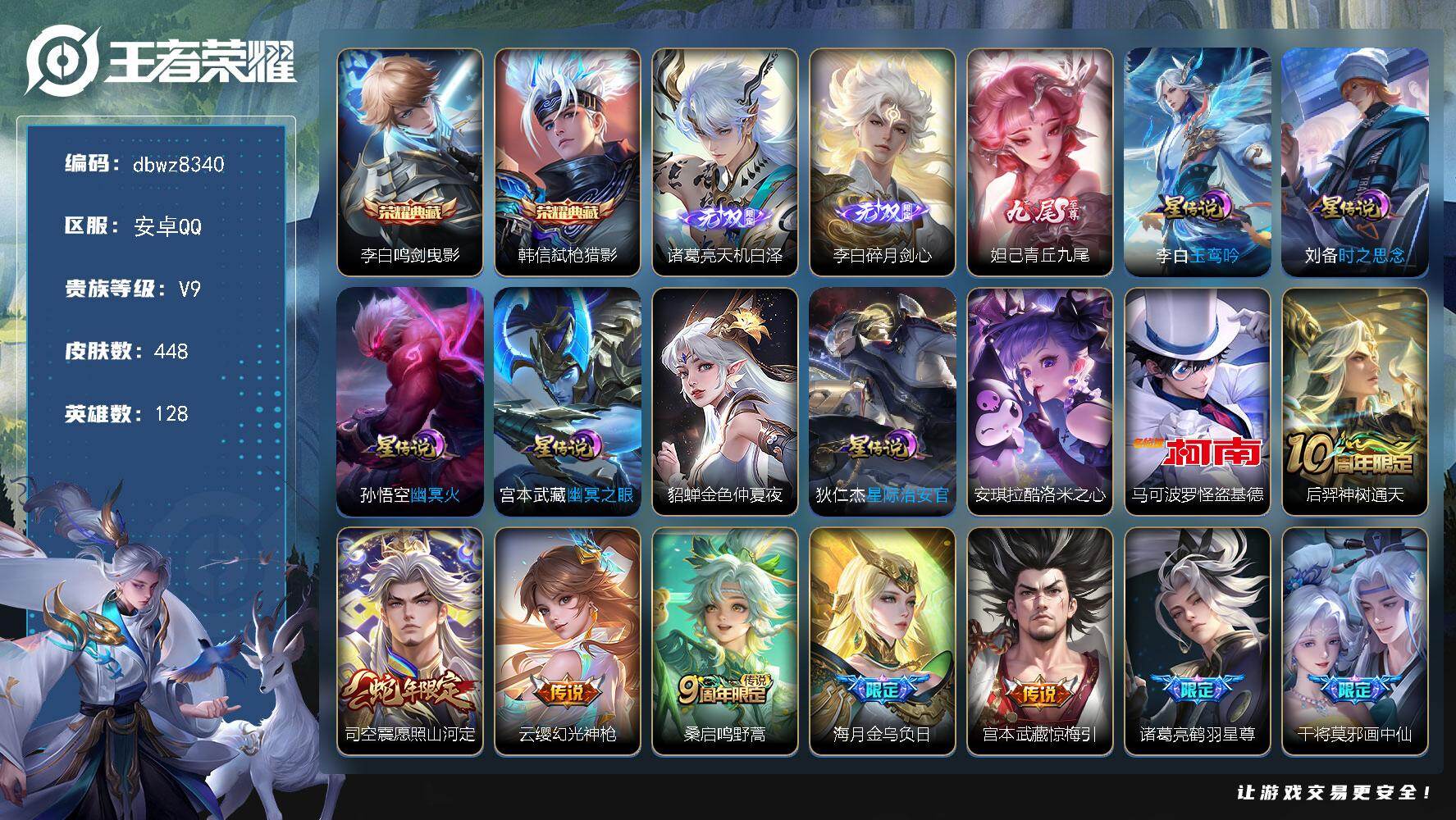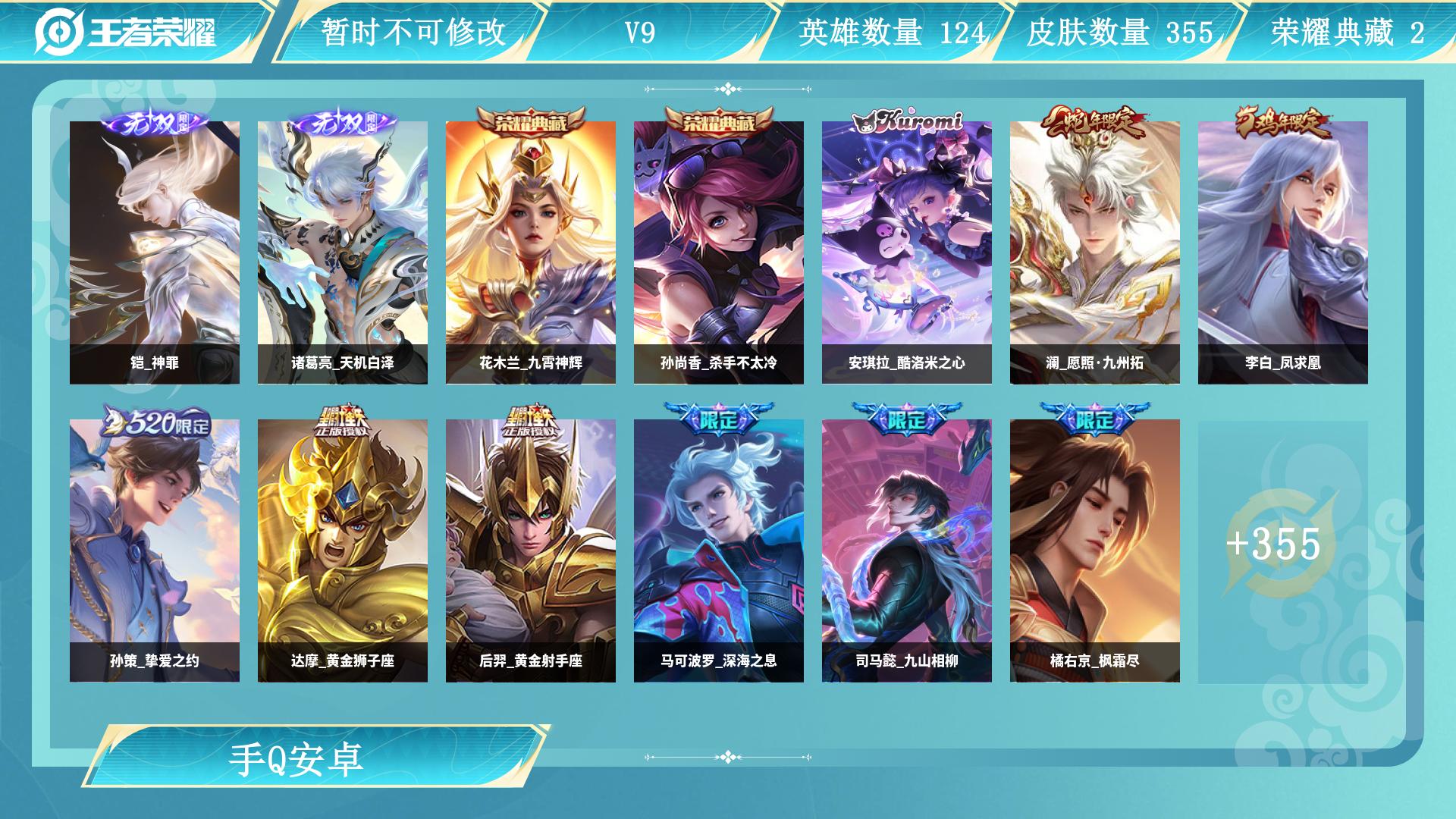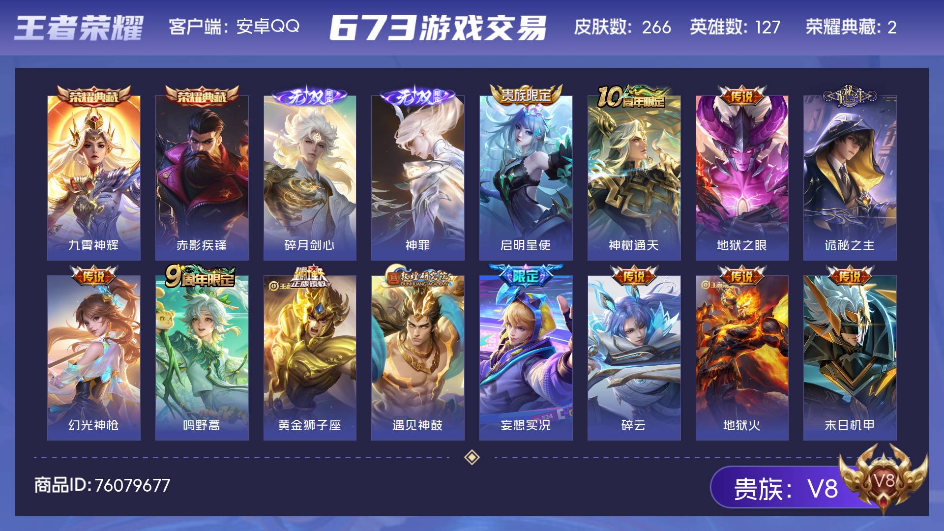 V8 皮肤266 英雄127 至尊星耀 荣耀典藏2 无双皮肤2 传说13 其他皮肤255