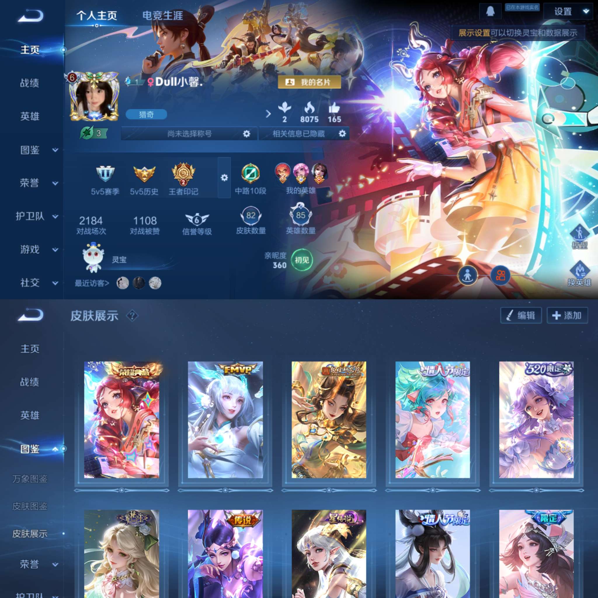 实名: 可修改 贵族等级: V6 英雄数: 83 皮肤数: 64 传说皮: 猫