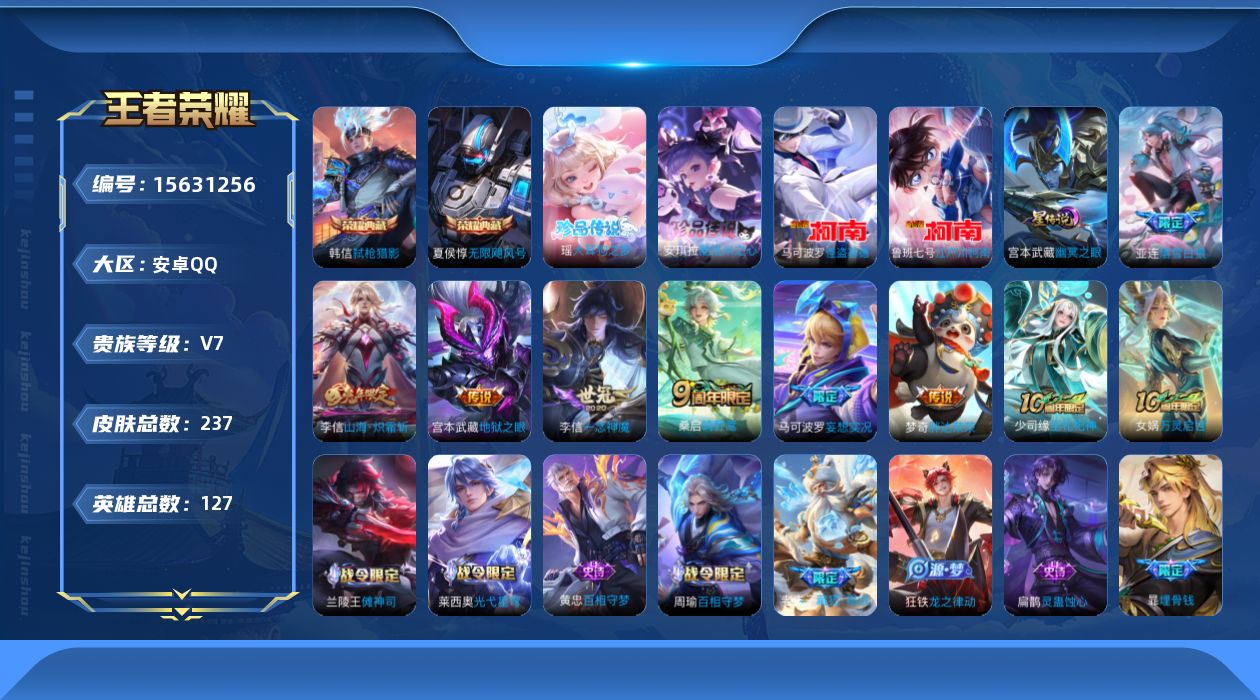 安卓Q区-无二次-贵8-123英雄-142皮肤-21传说-47史诗-38限定-1星元-5按键