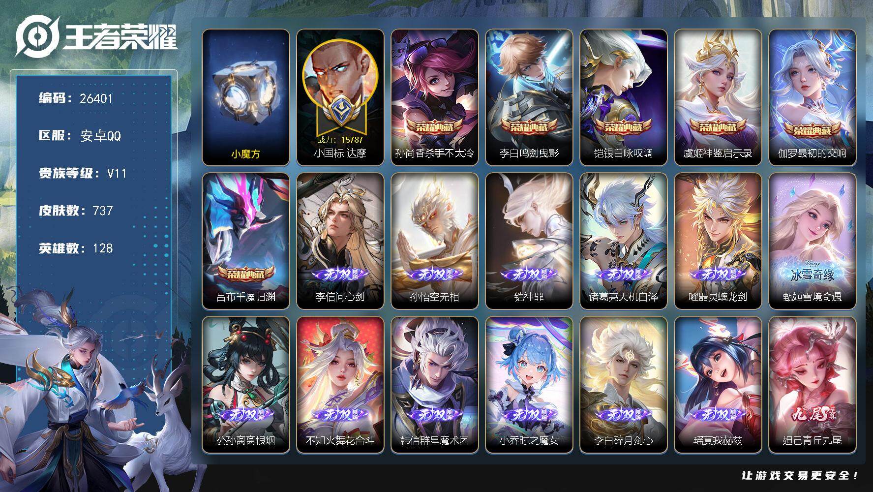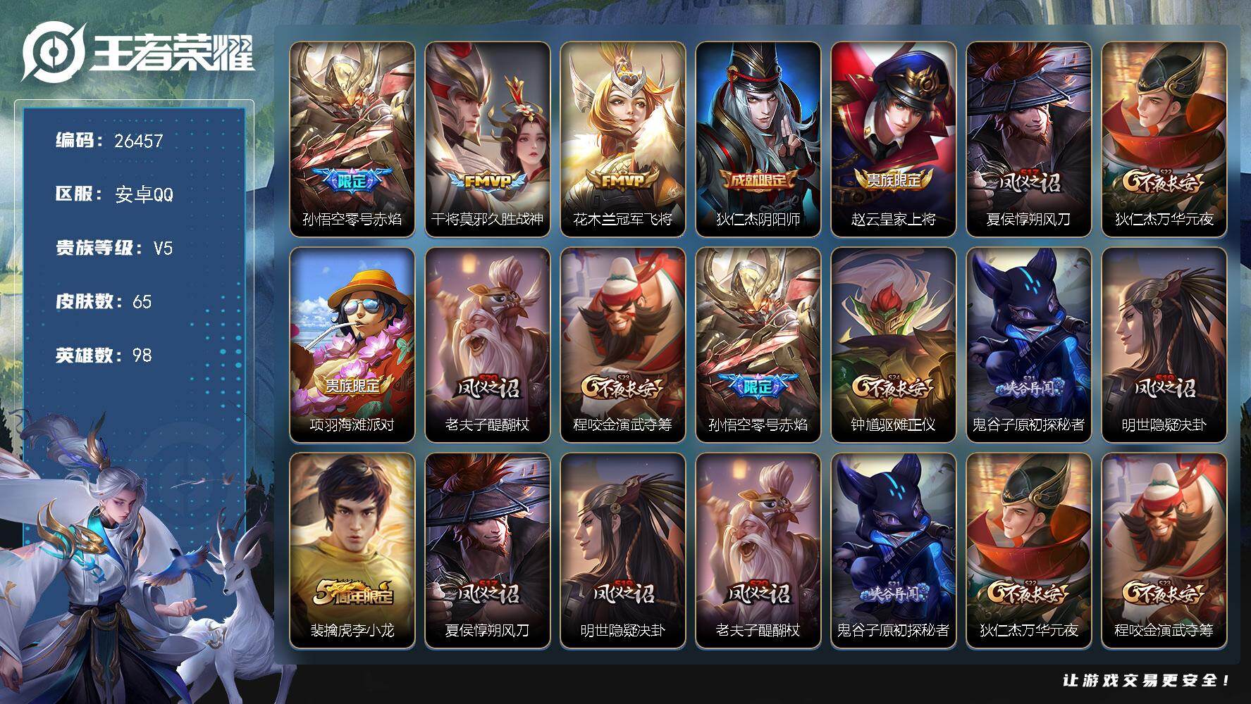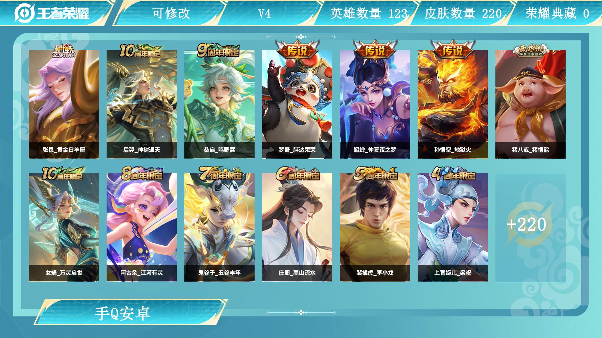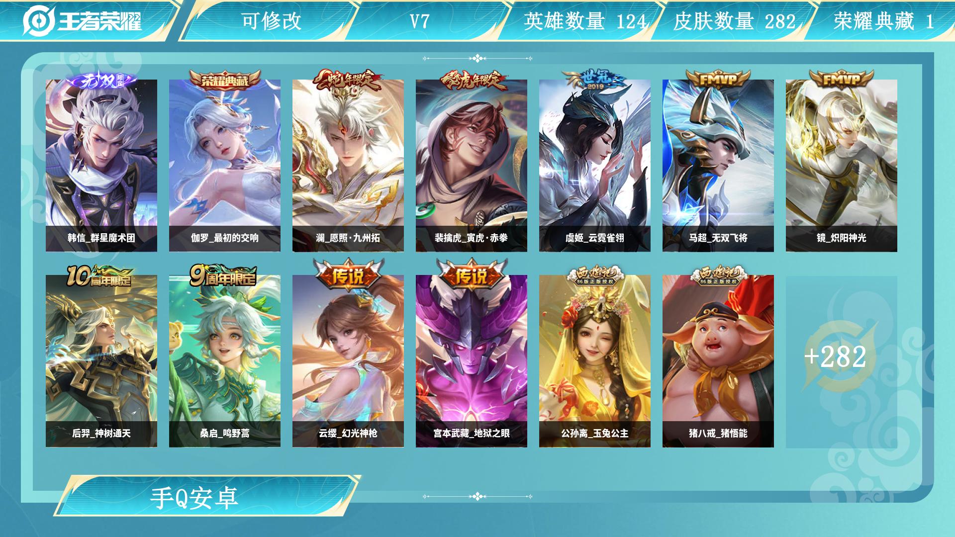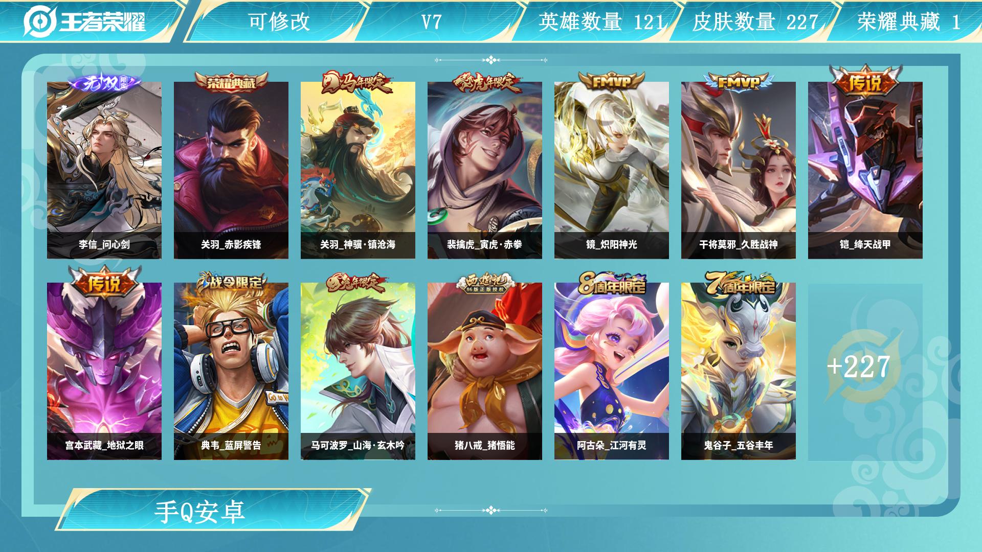 皮肤数量257印记总数11V7绝世王者可修改账号类型3荣耀典