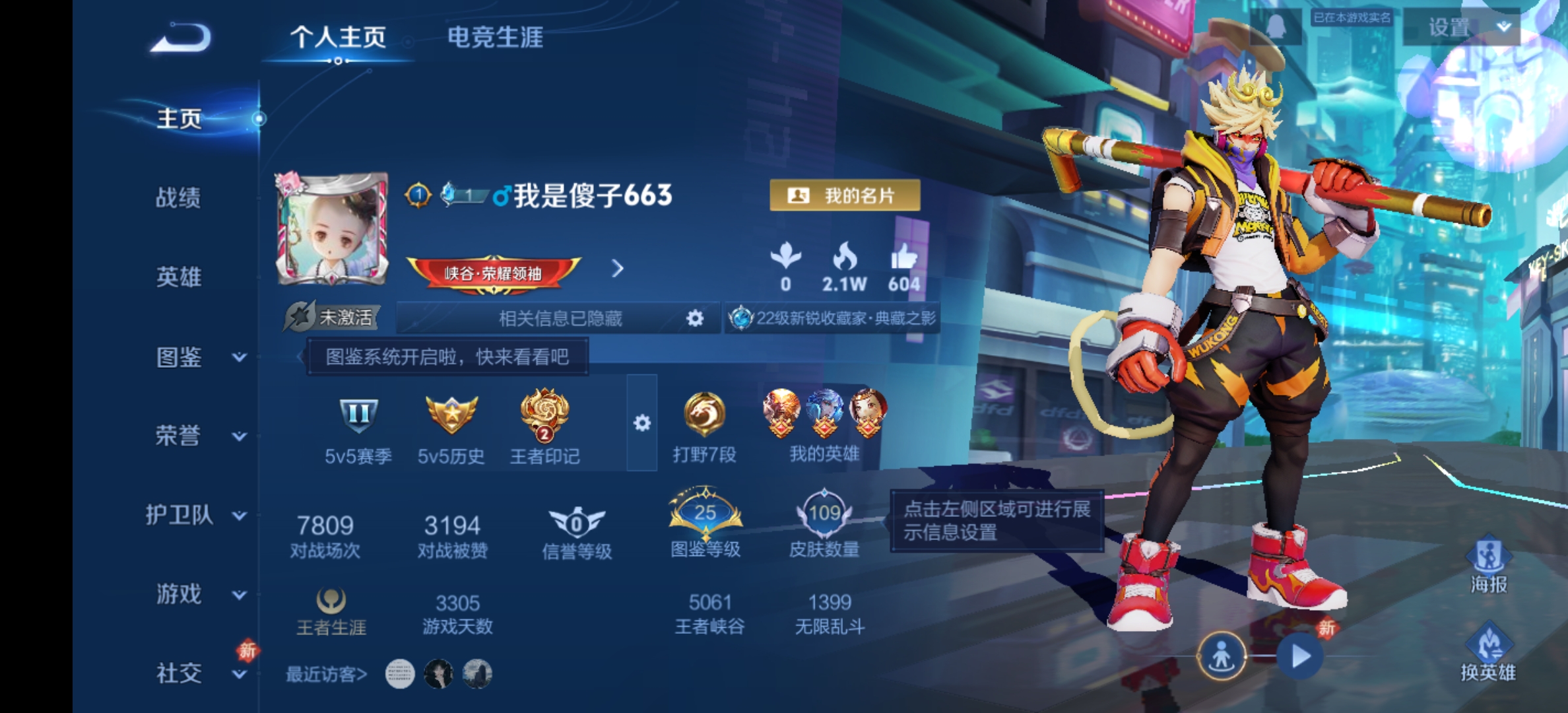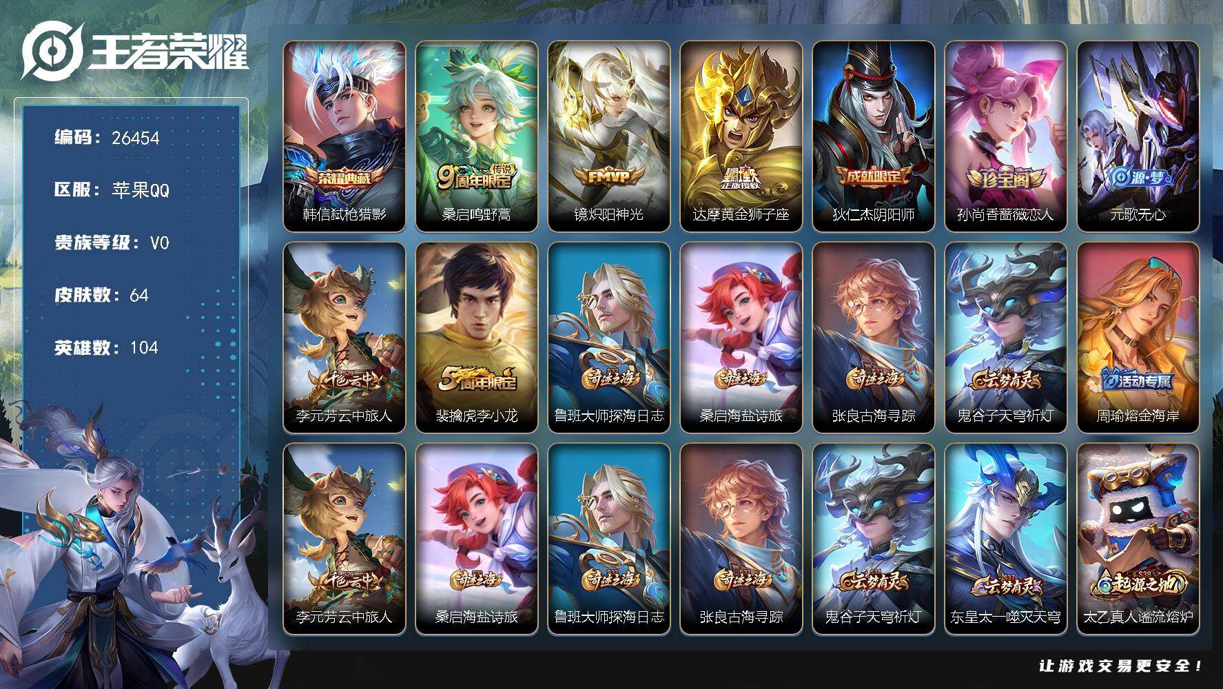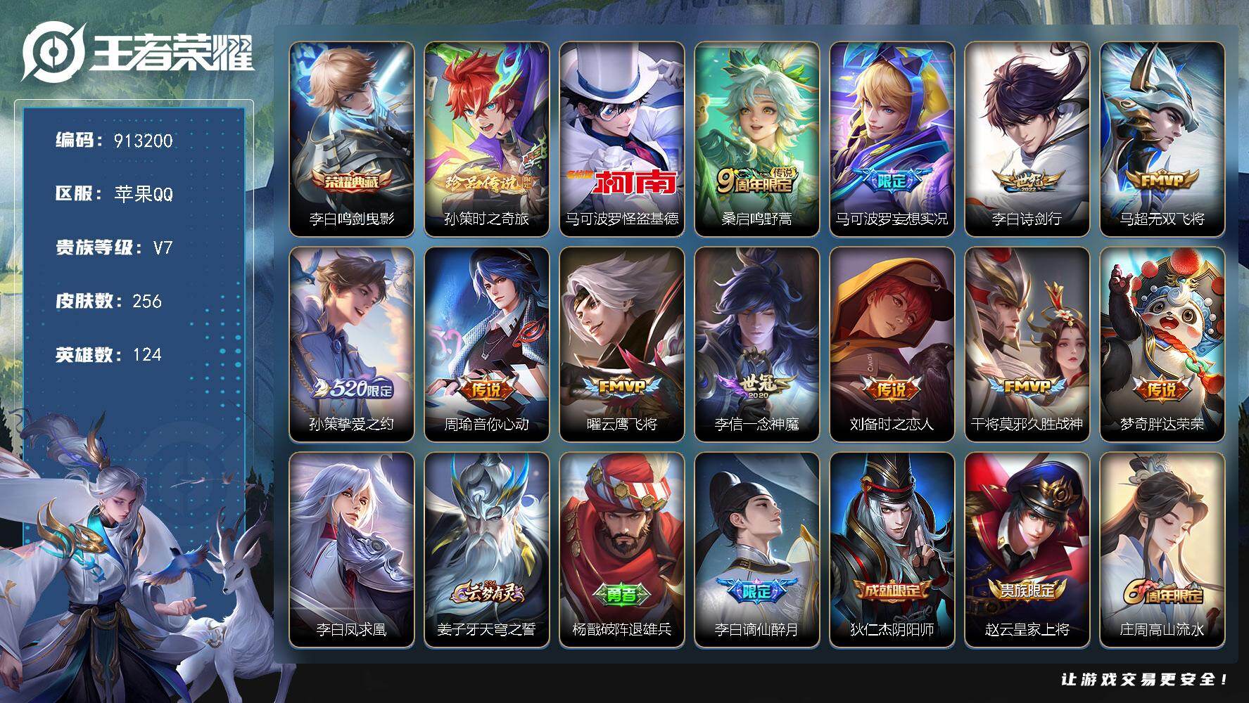 贵族等级: V7 英雄数: 124 皮肤数: 256