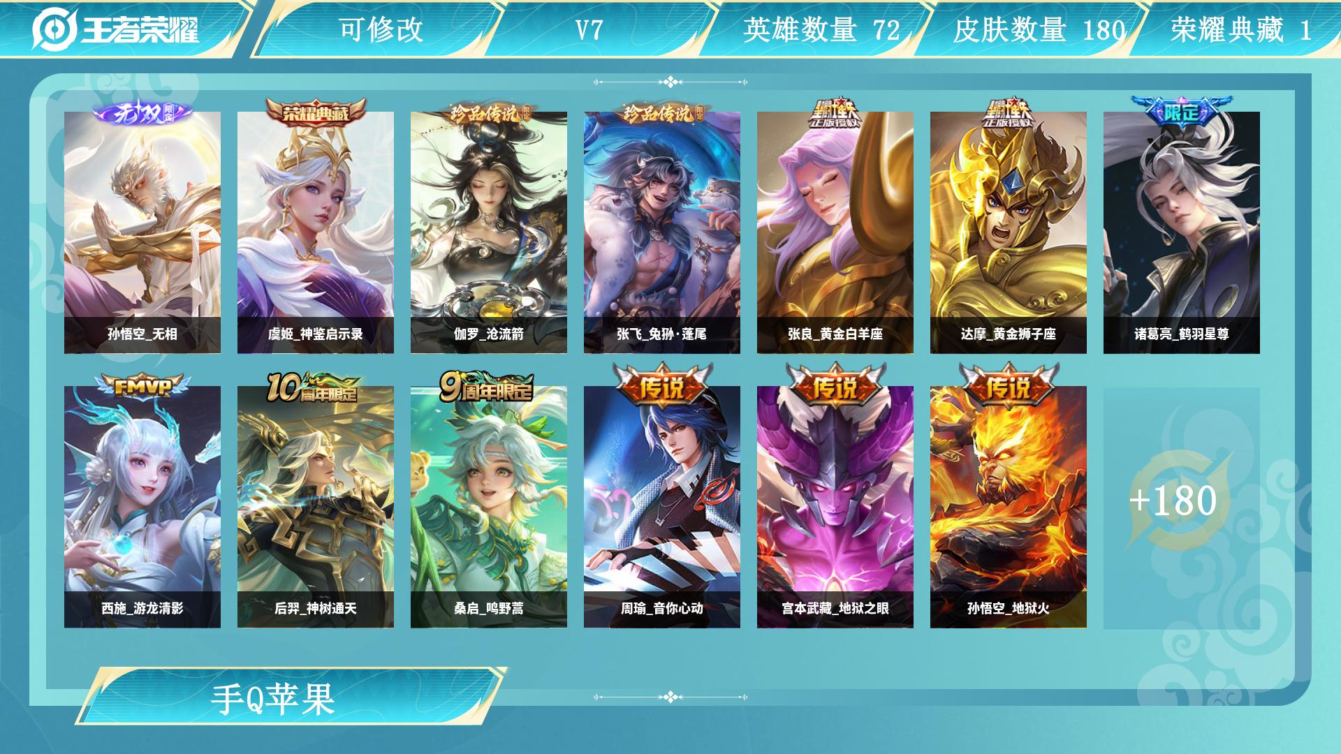 野射王!皮肤数量180印记总数5V7最强王者可修改账号类型2
