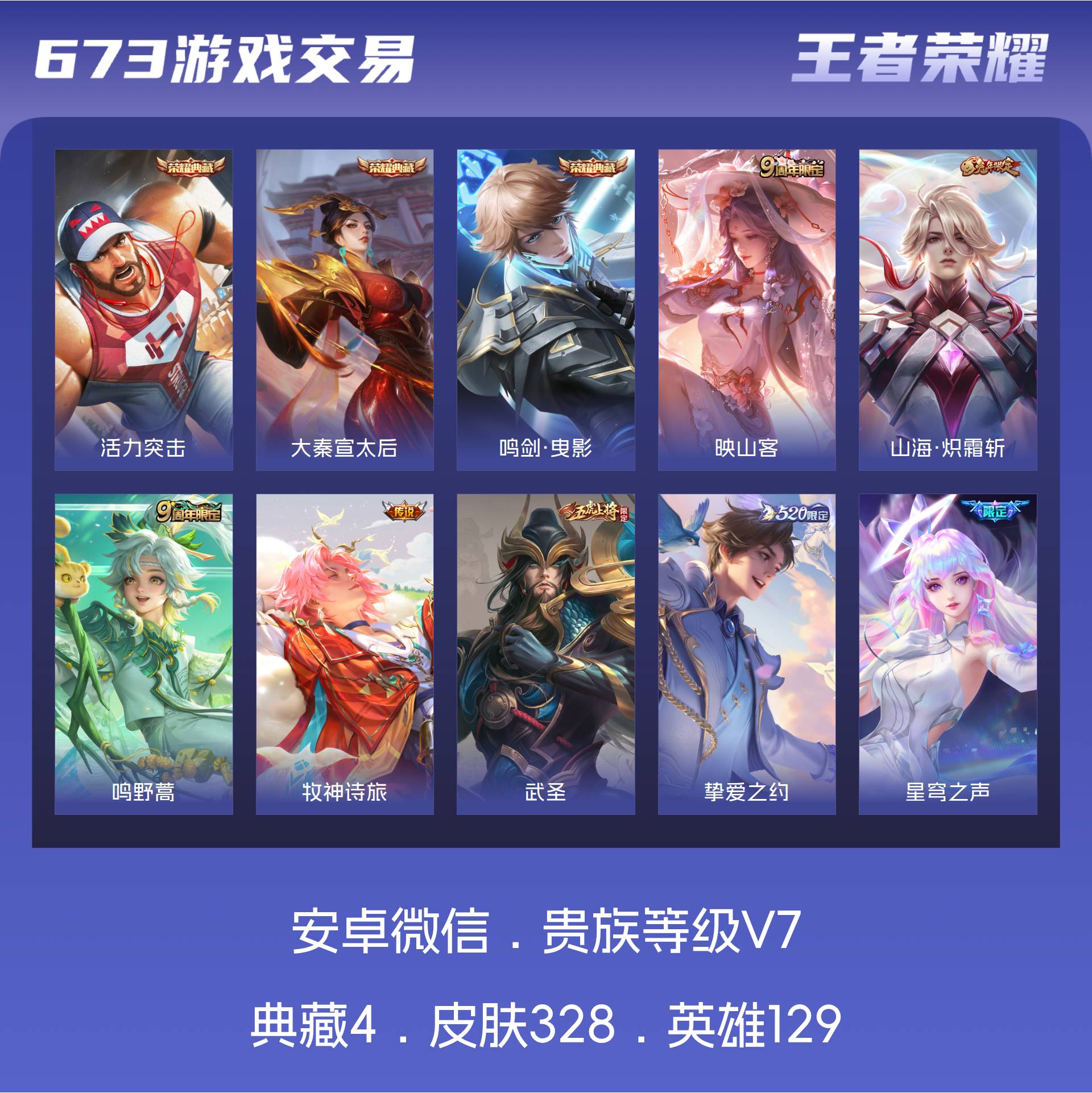 皮肤103 英雄129 永恒钻石 传说6 其他皮肤103-安卓QQ-出售王者V7账号有喜欢的可以联系