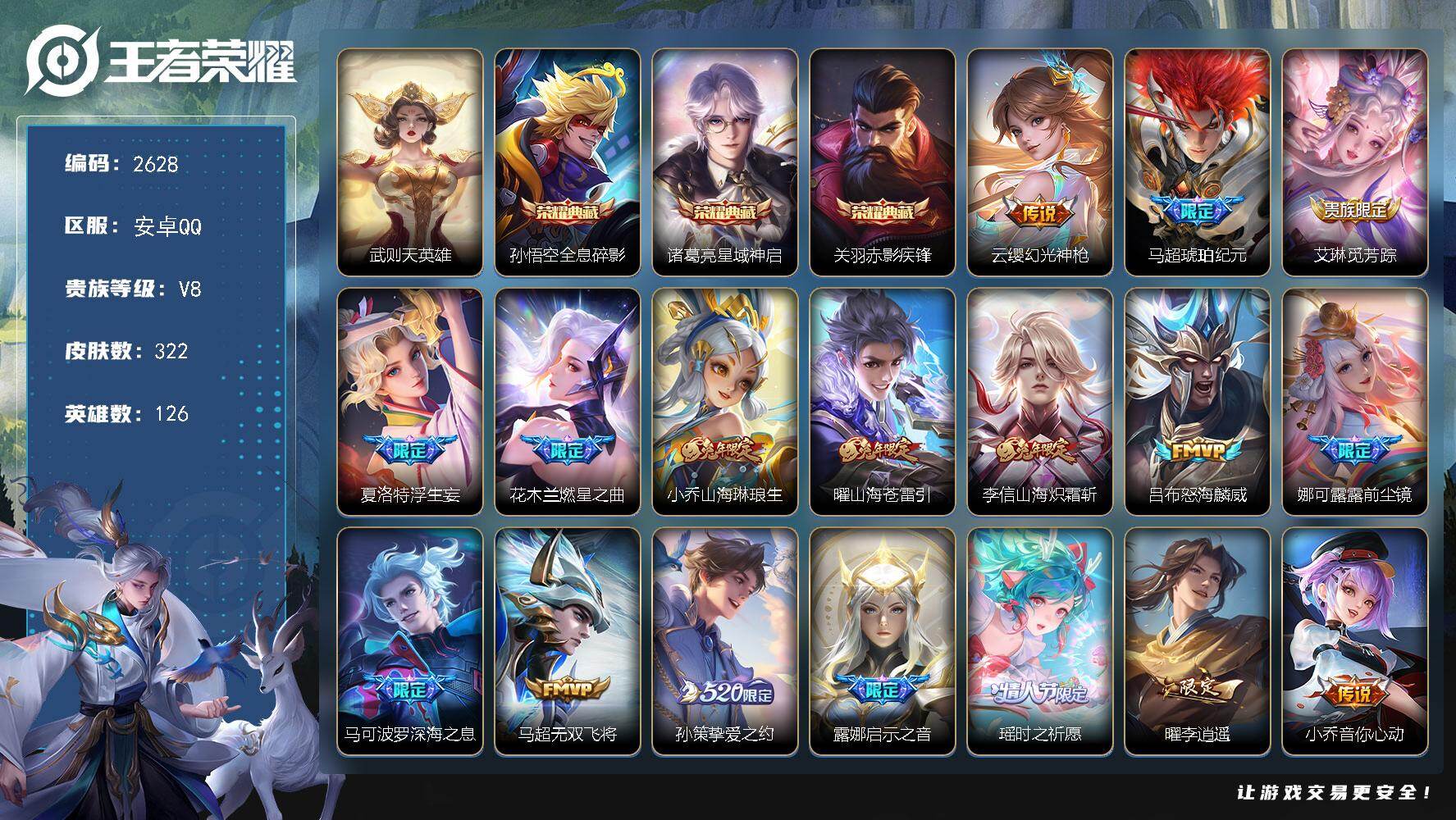 【181皮肤1水晶2传说可秒换绑】安卓QQ-126英雄-1