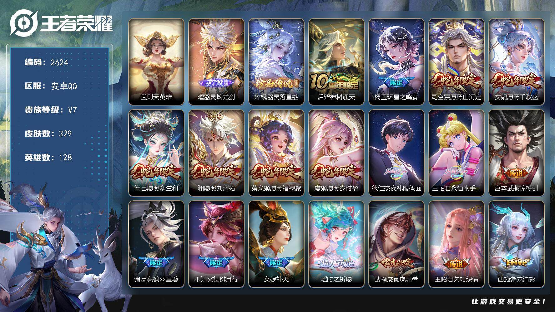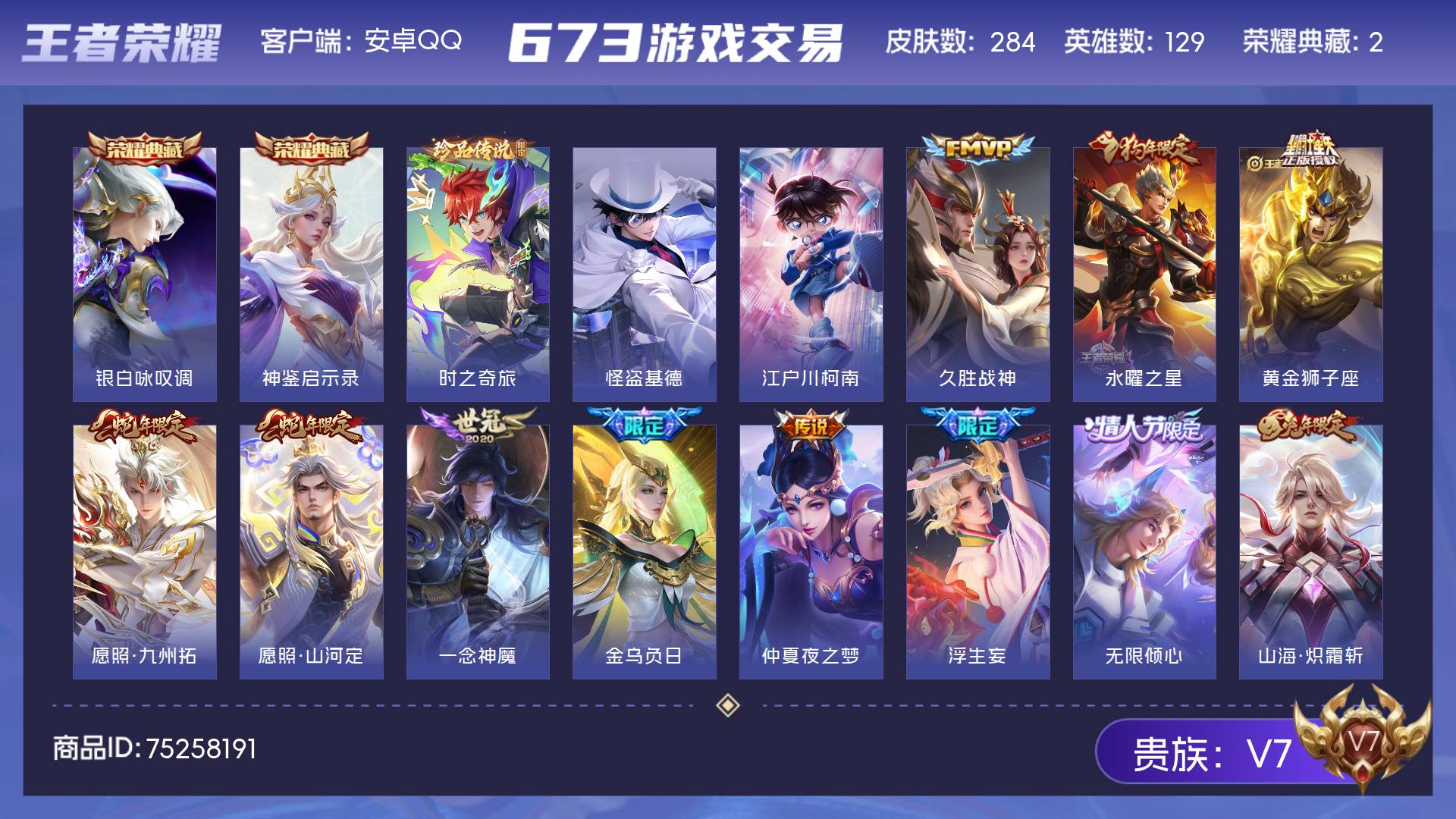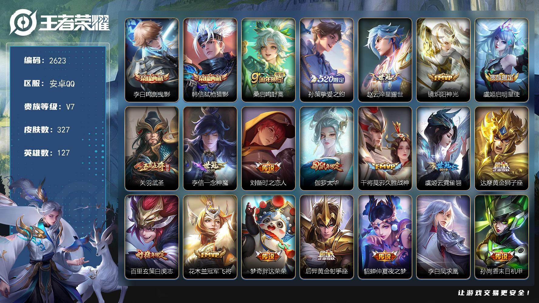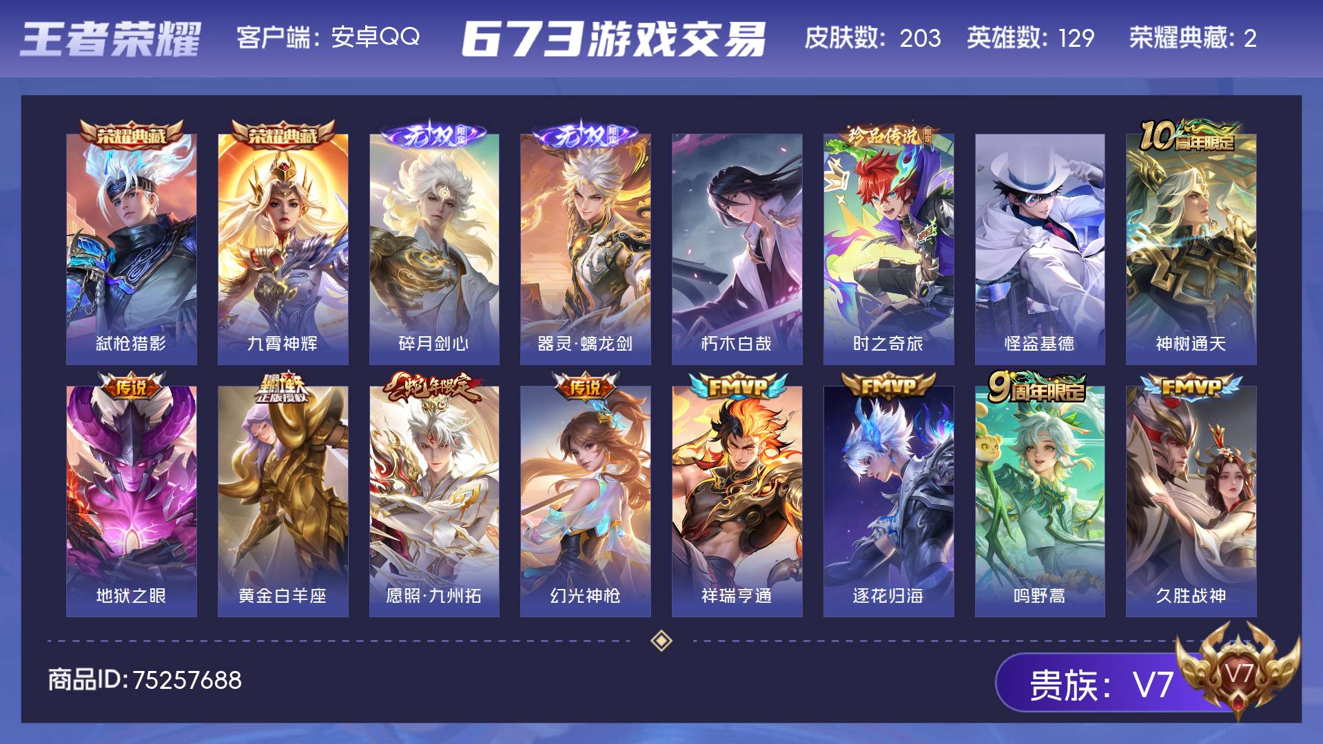 V7 皮肤203 英雄129 至尊星耀 荣耀典藏2 无双皮肤2 珍品传说3 传说13 其他皮肤189