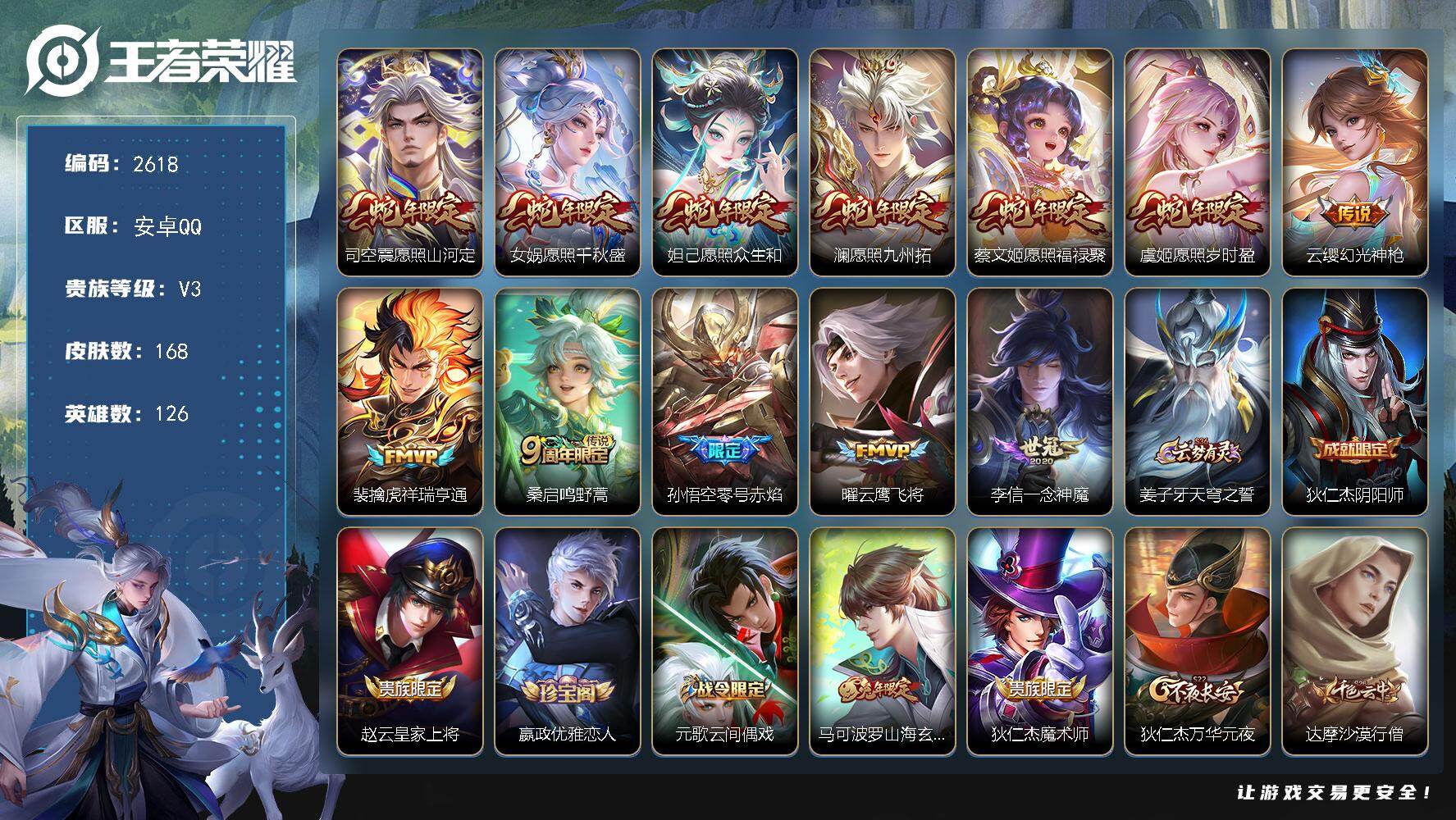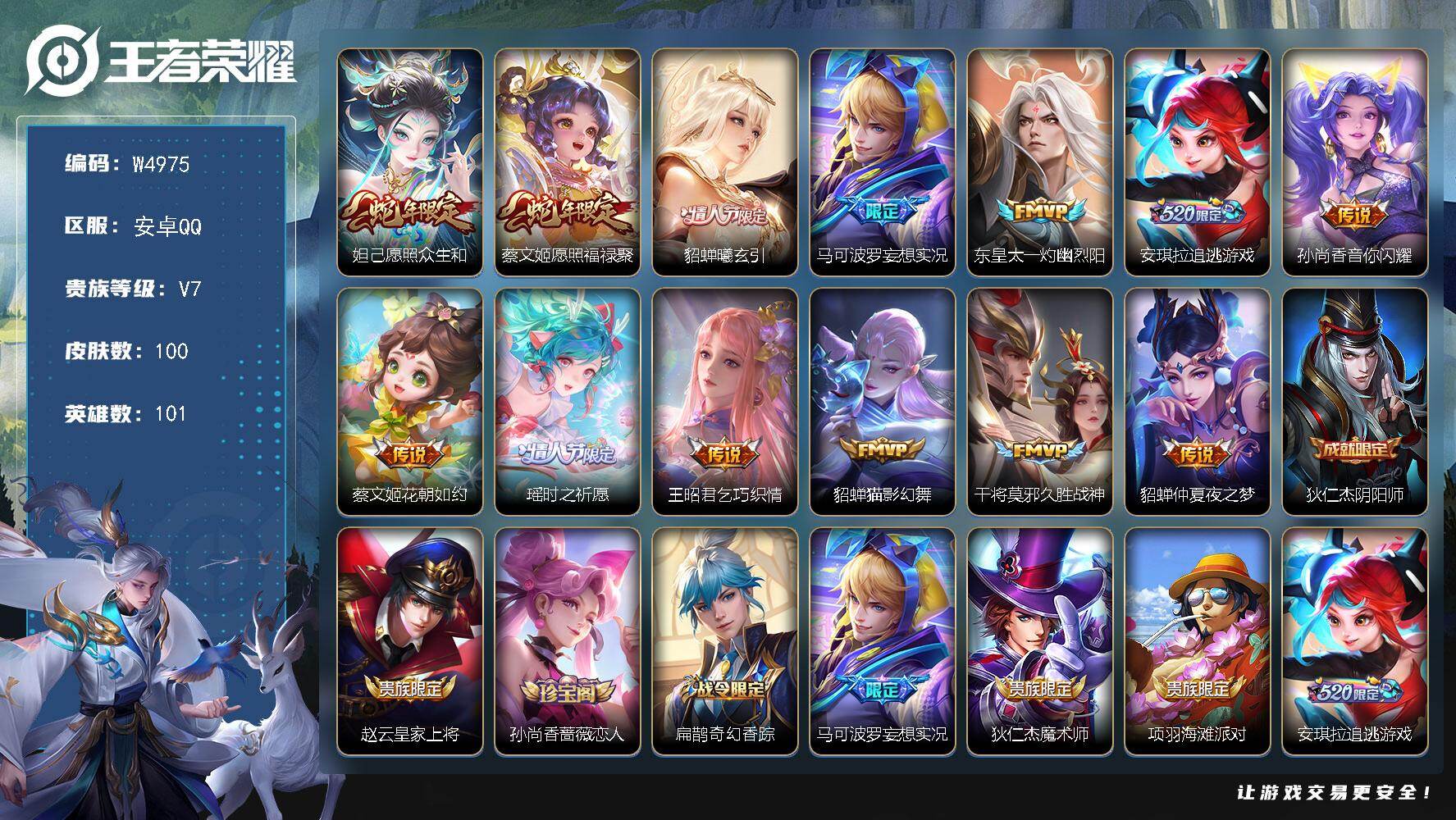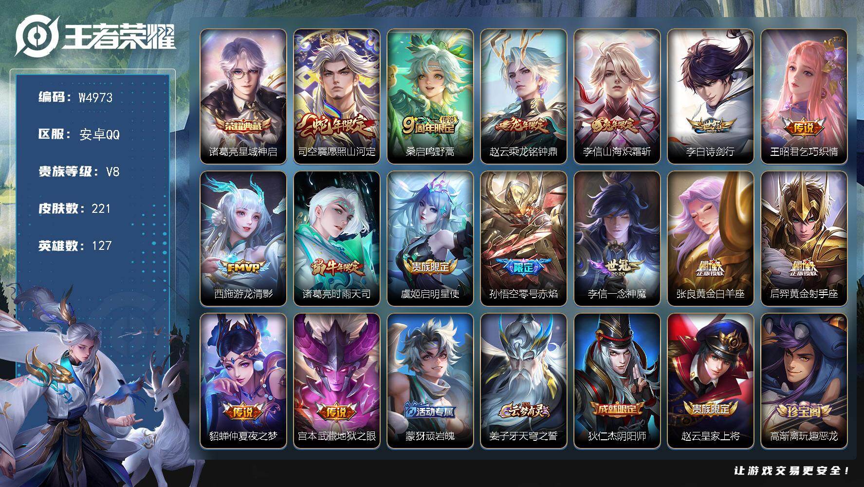 【W4981】安卓Q区-可二次-贵6-105英雄-81皮肤-8传说-23史诗-