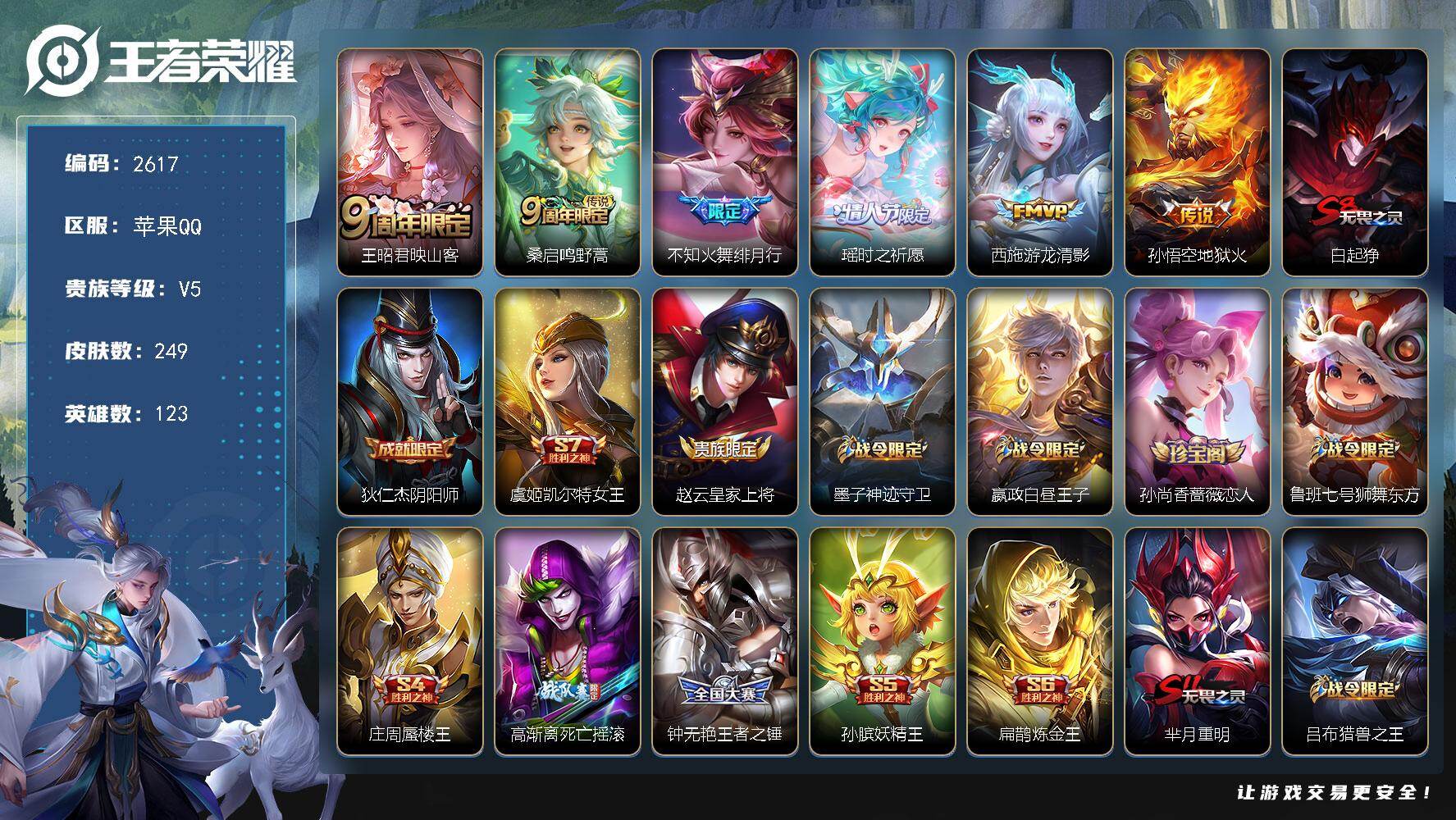 可二次-贵6-105英雄-81皮肤-8传说-23史诗-32限定-9按键-
