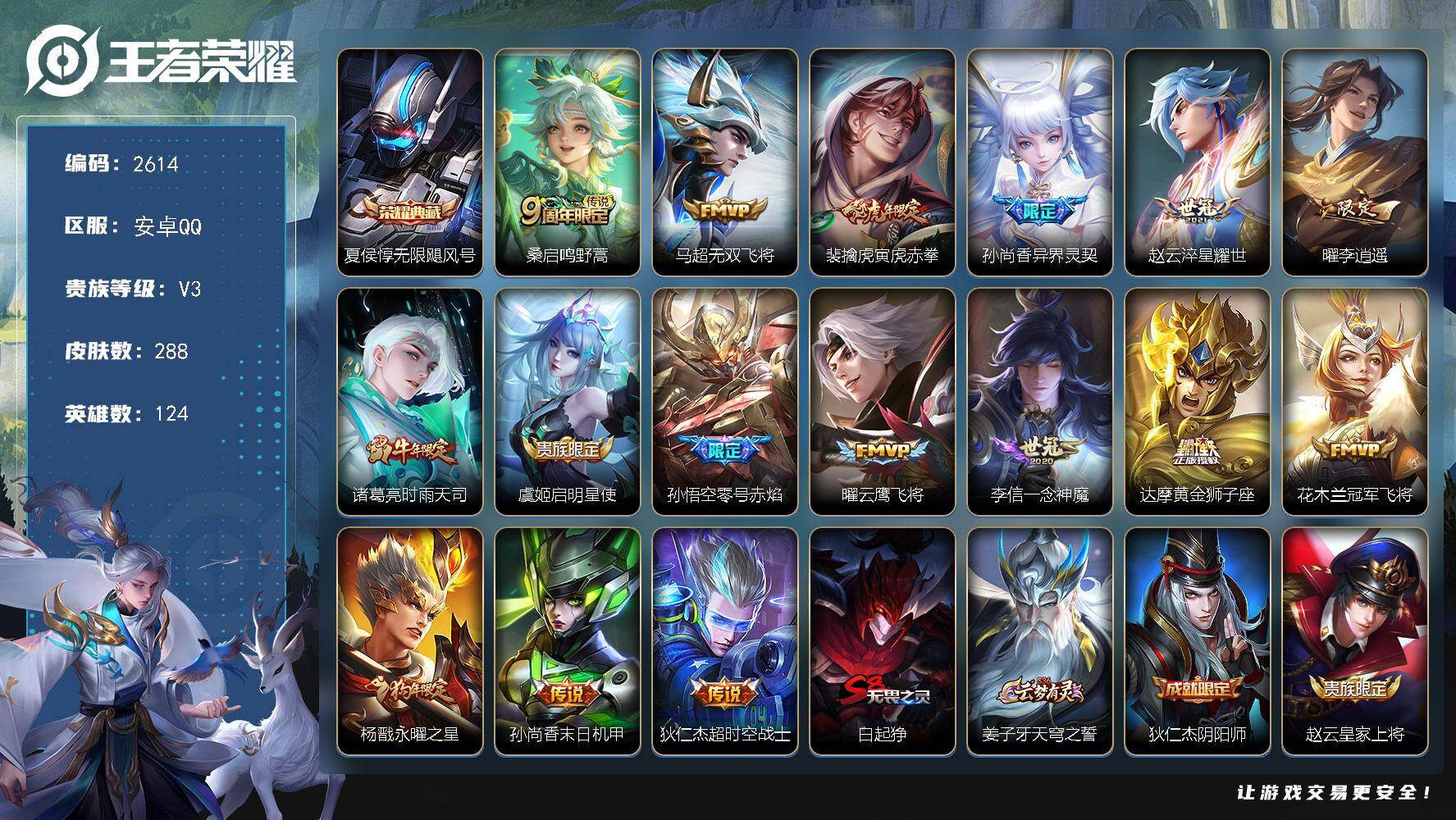 【W4980】安卓Q-可二次-贵5-127英雄-214皮肤-1典藏-1星元-2