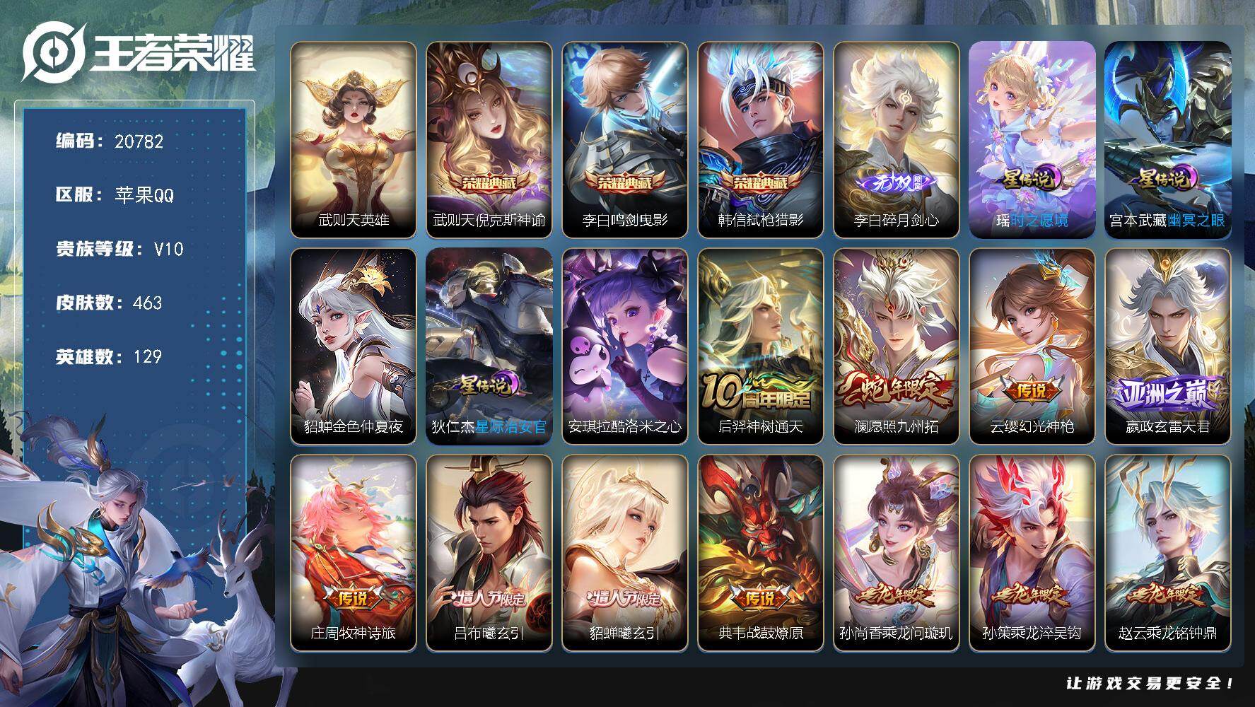 可换绑【V10精品号 4典藏含武则天英雄 李白无双 安琪拉珍品 马超铠琥珀纪元