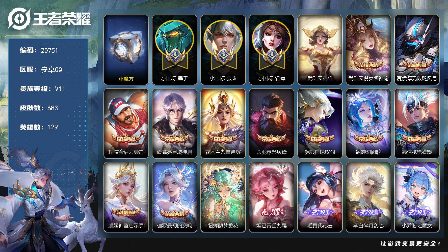 可换绑【无双V10精品号 历史小魔方 3个小国标 墨子小国标1.47万 嬴政小