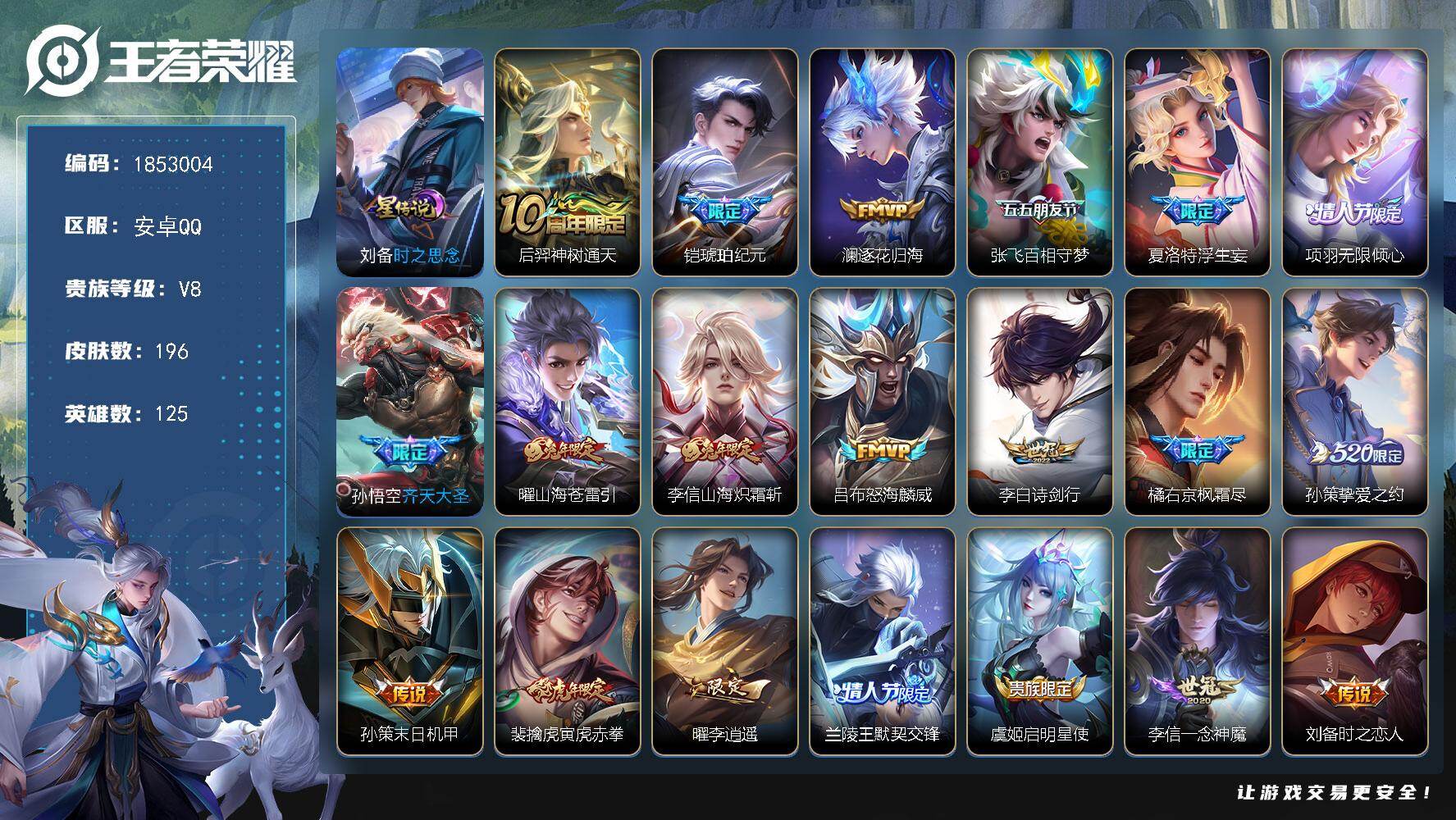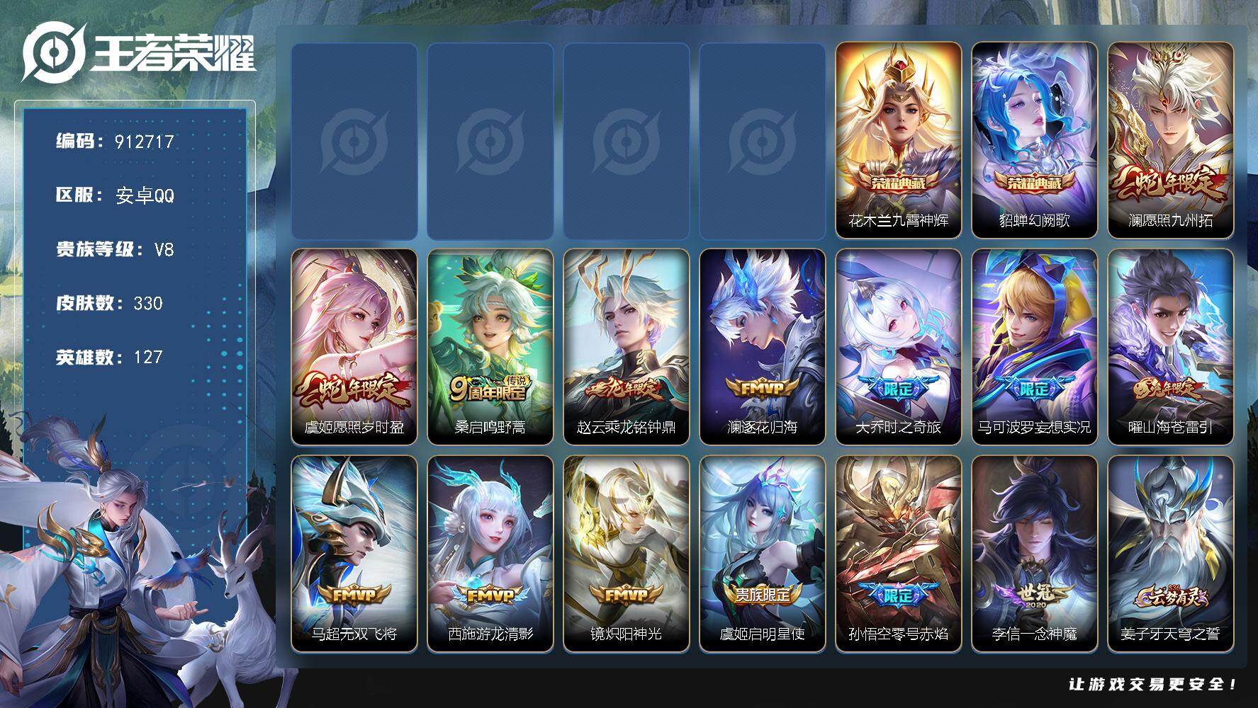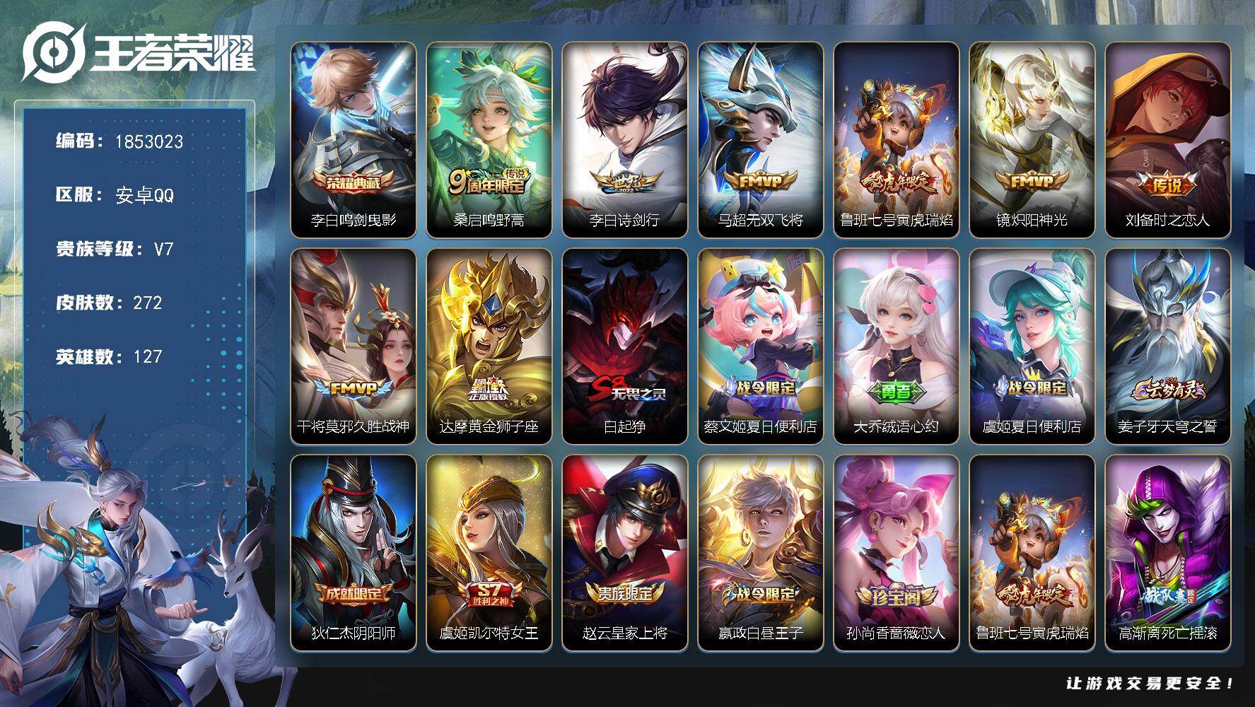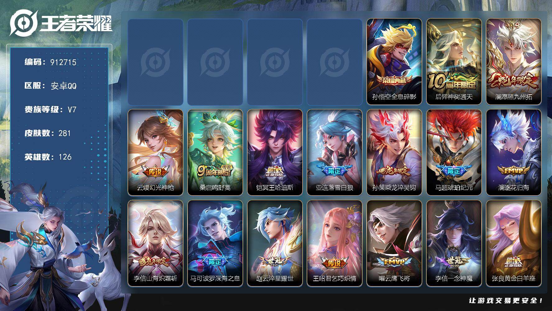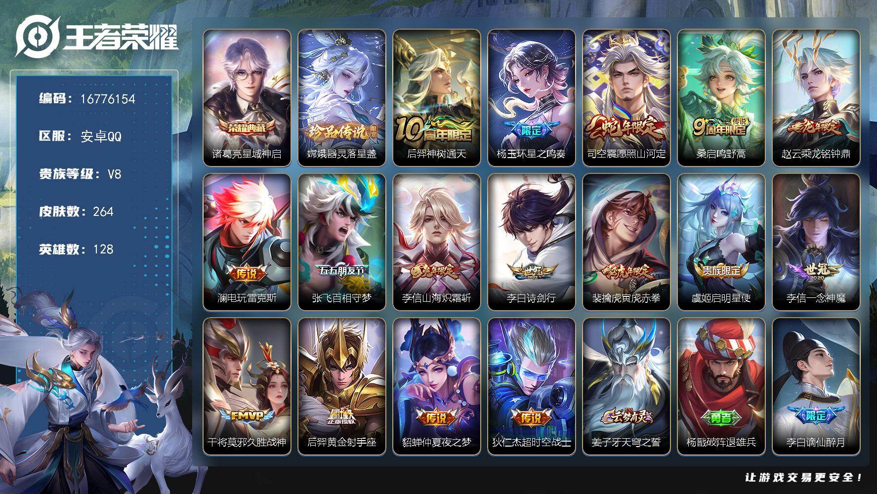 【16776154】安卓Q-V7-最强王者段位-128英雄-264皮肤-1典藏