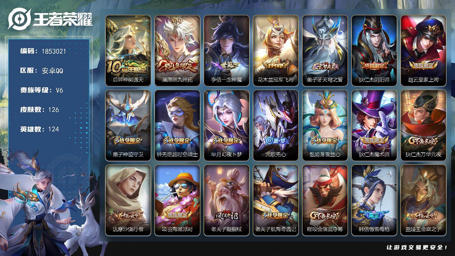 V6-最强王者段位-126英雄-281皮肤-1典藏皮肤-20传说