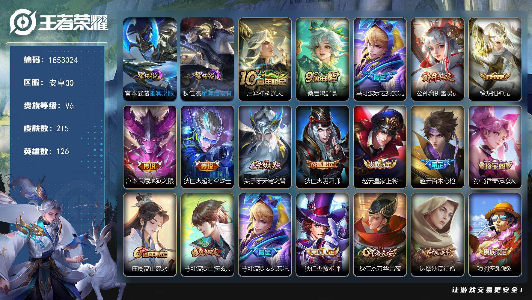 可二次【76皮肤1无双1星元1珍品1传说可秒换绑】安卓QQ