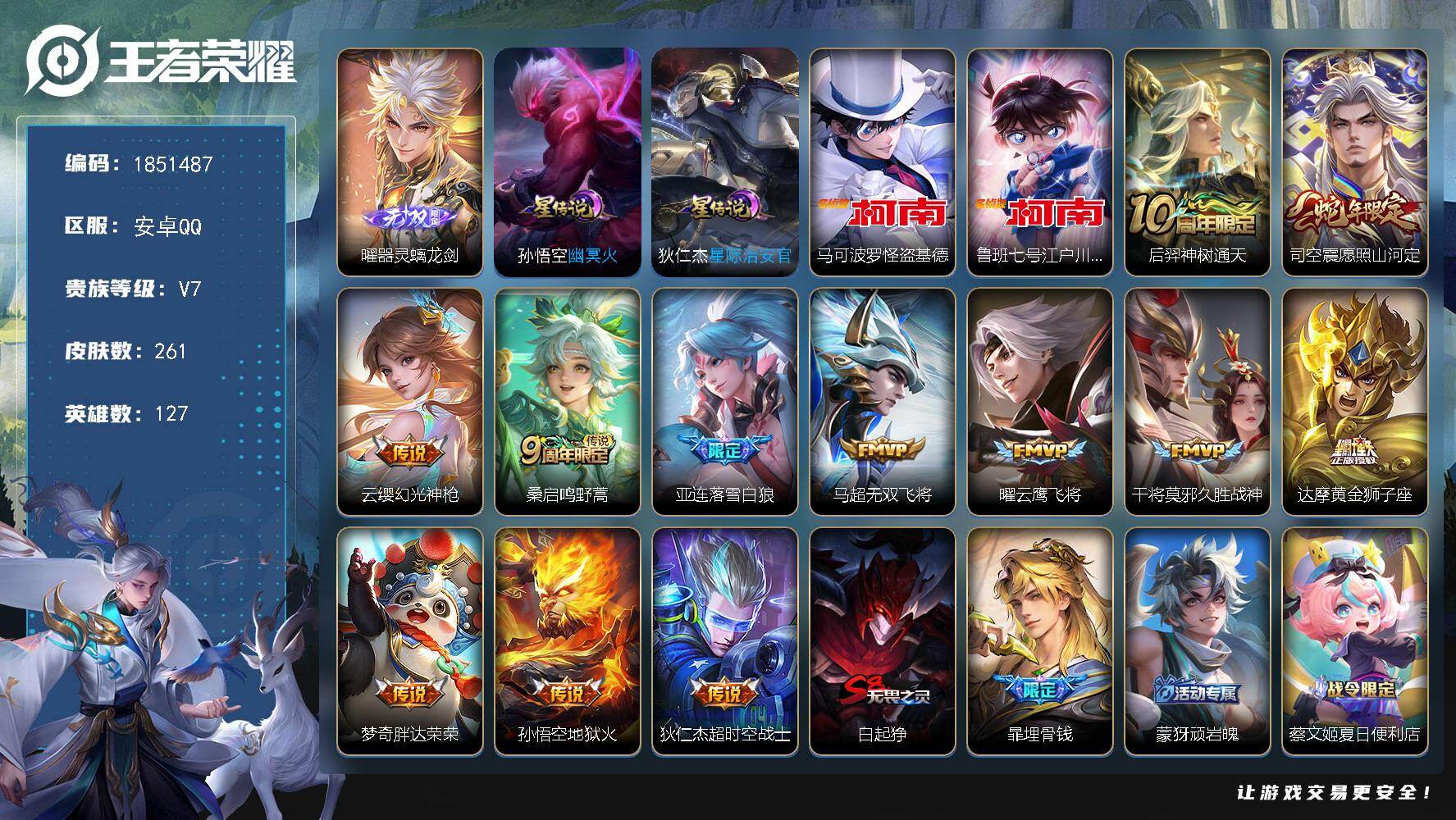 v7 10传说 1珍品 1典藏 1星传时之思念 -279皮肤-127英雄