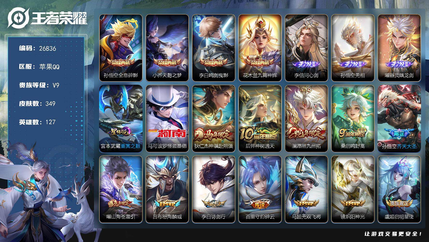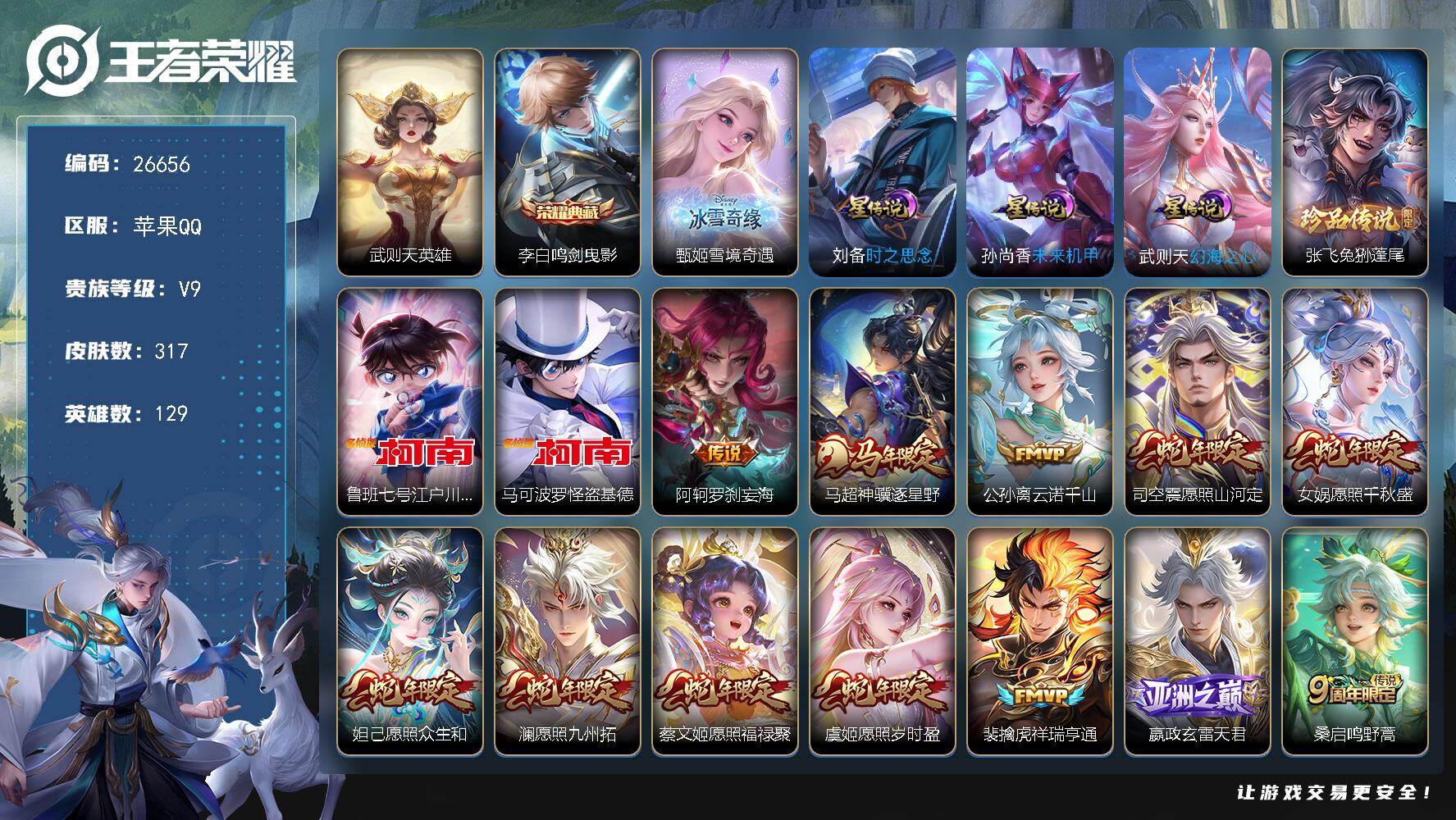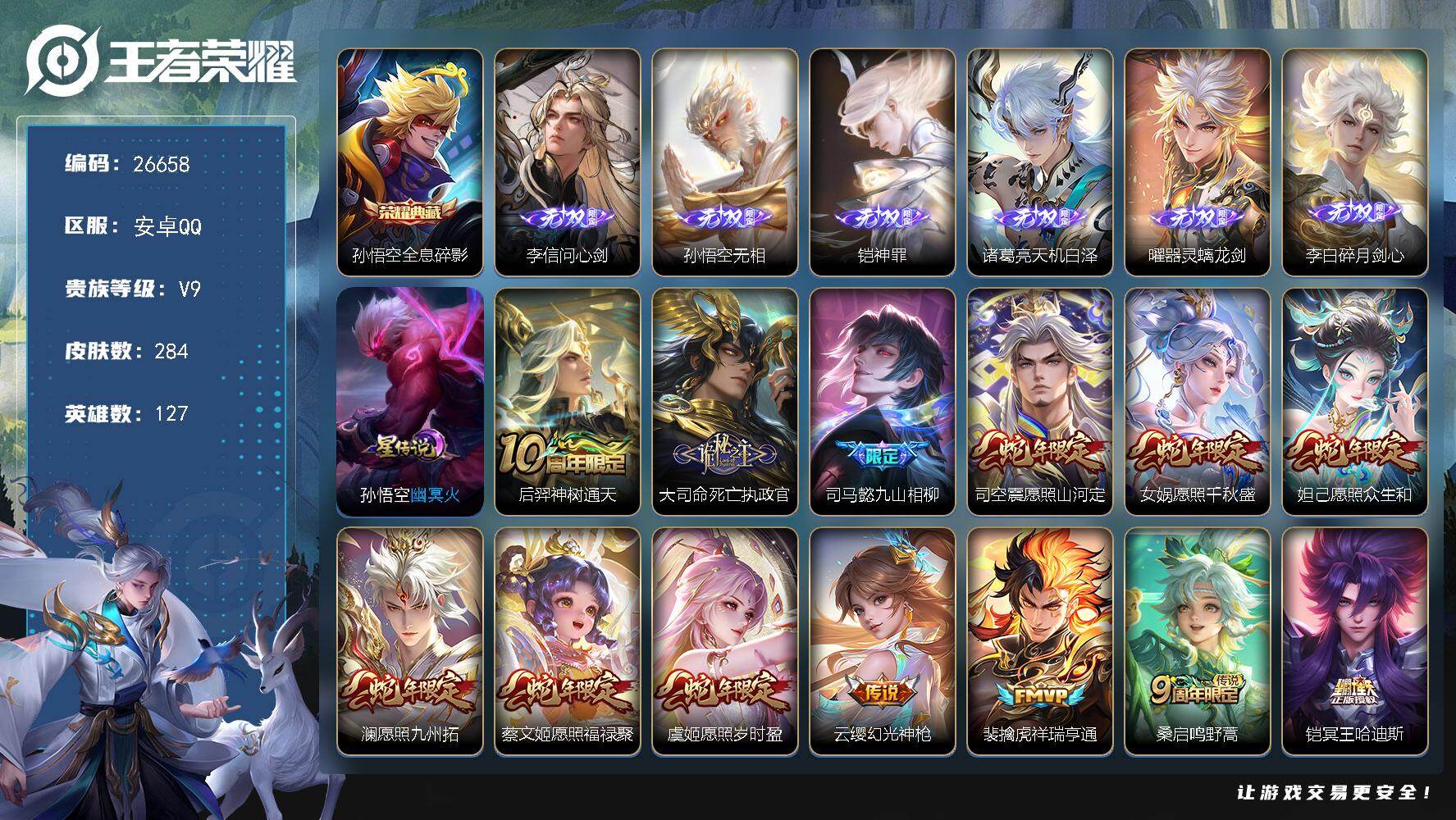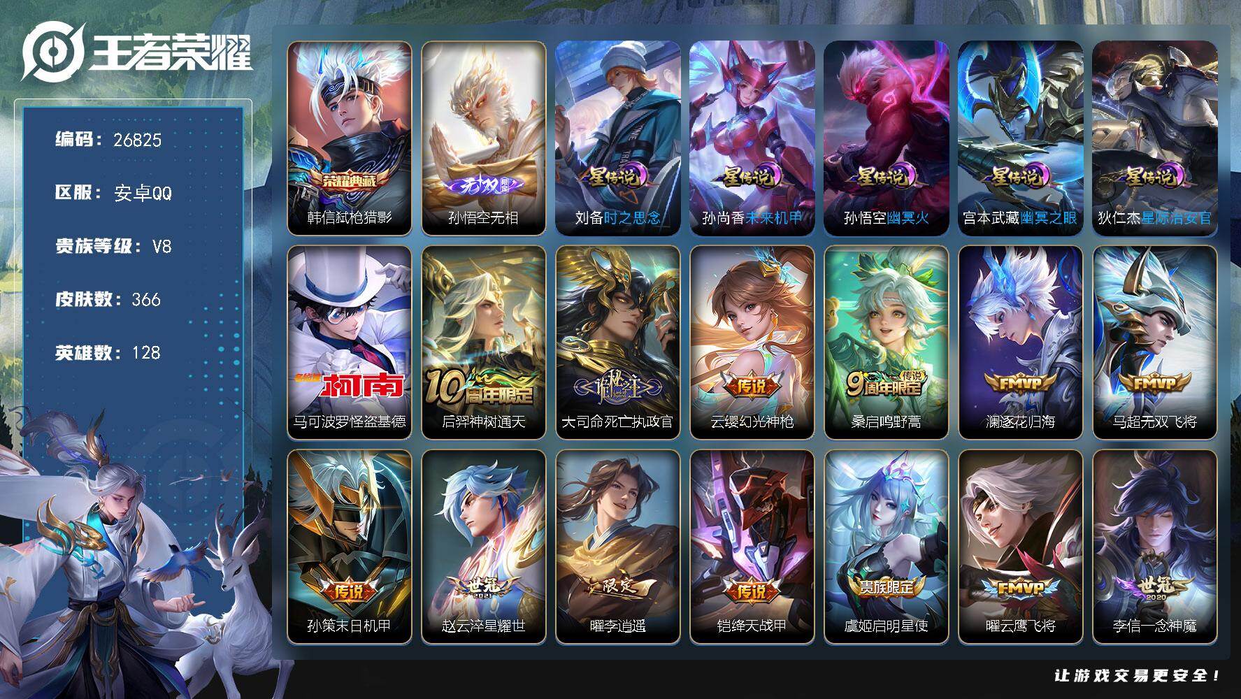 可换绑【V9极品打野号·6无双·孙悟空全皮·赵云全皮·蛇年全套·1典藏·死亡执