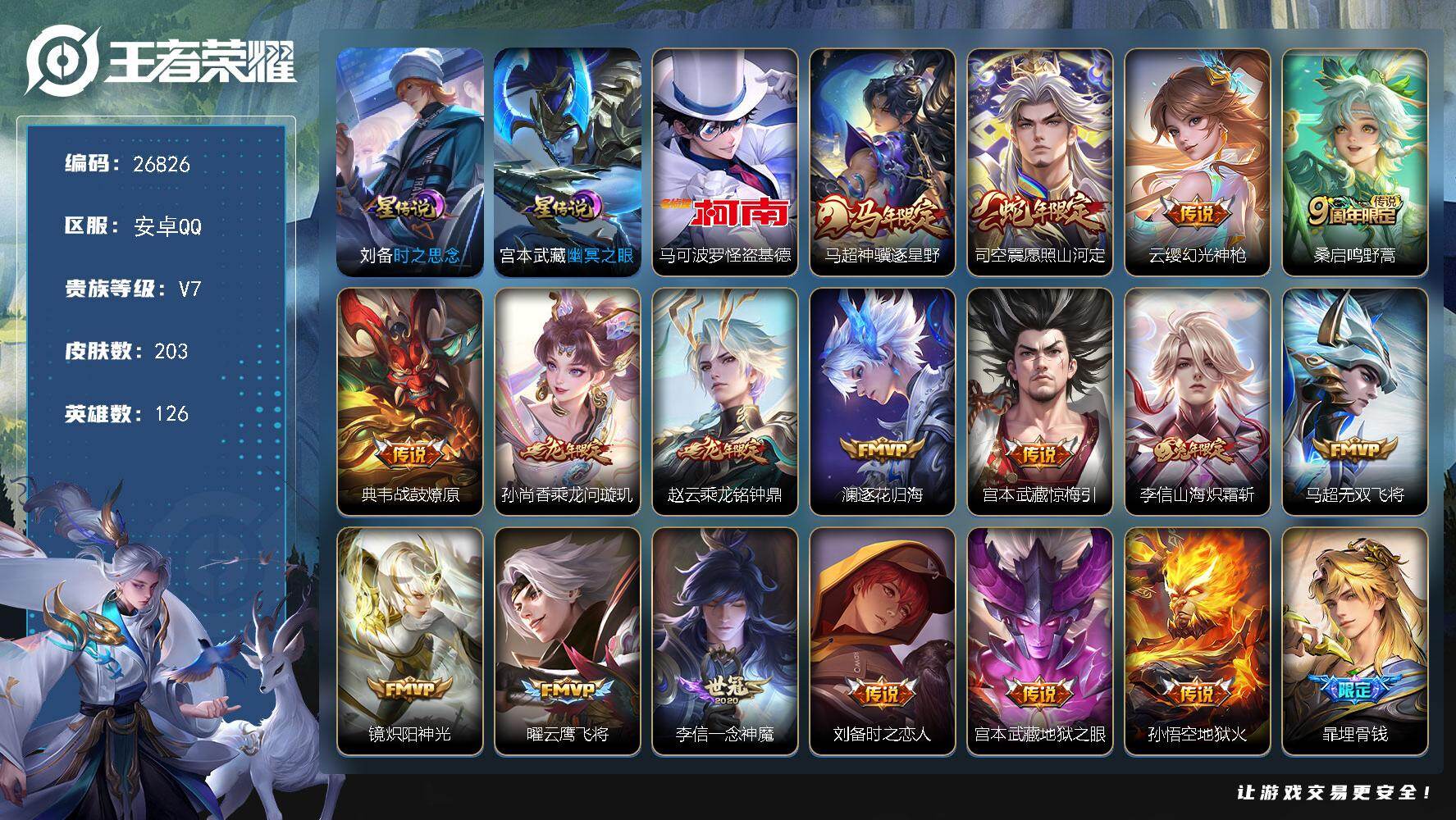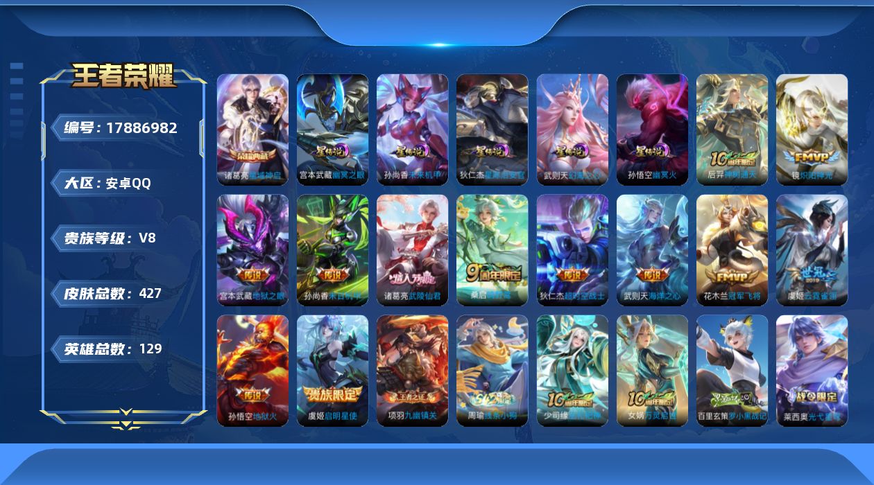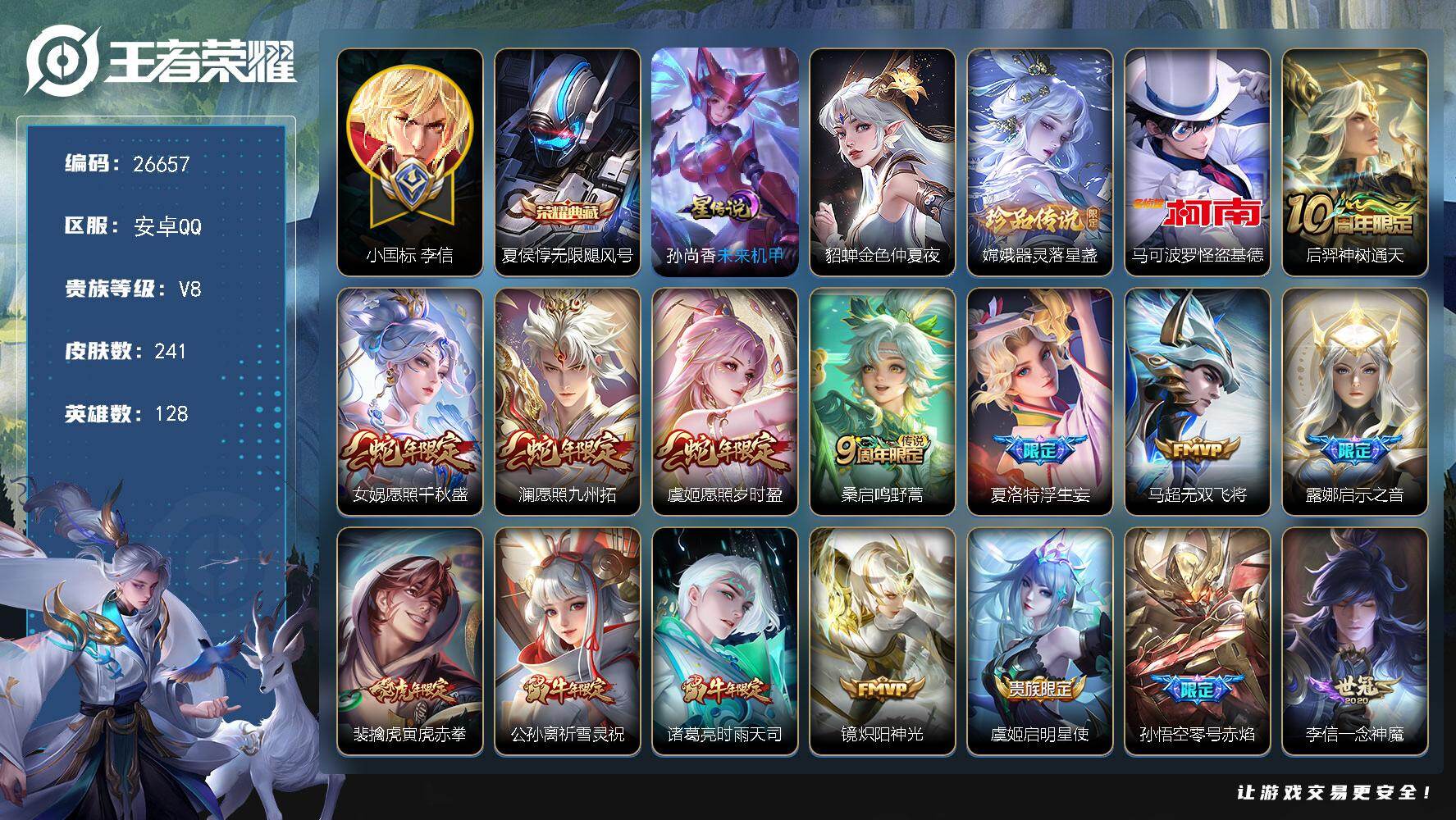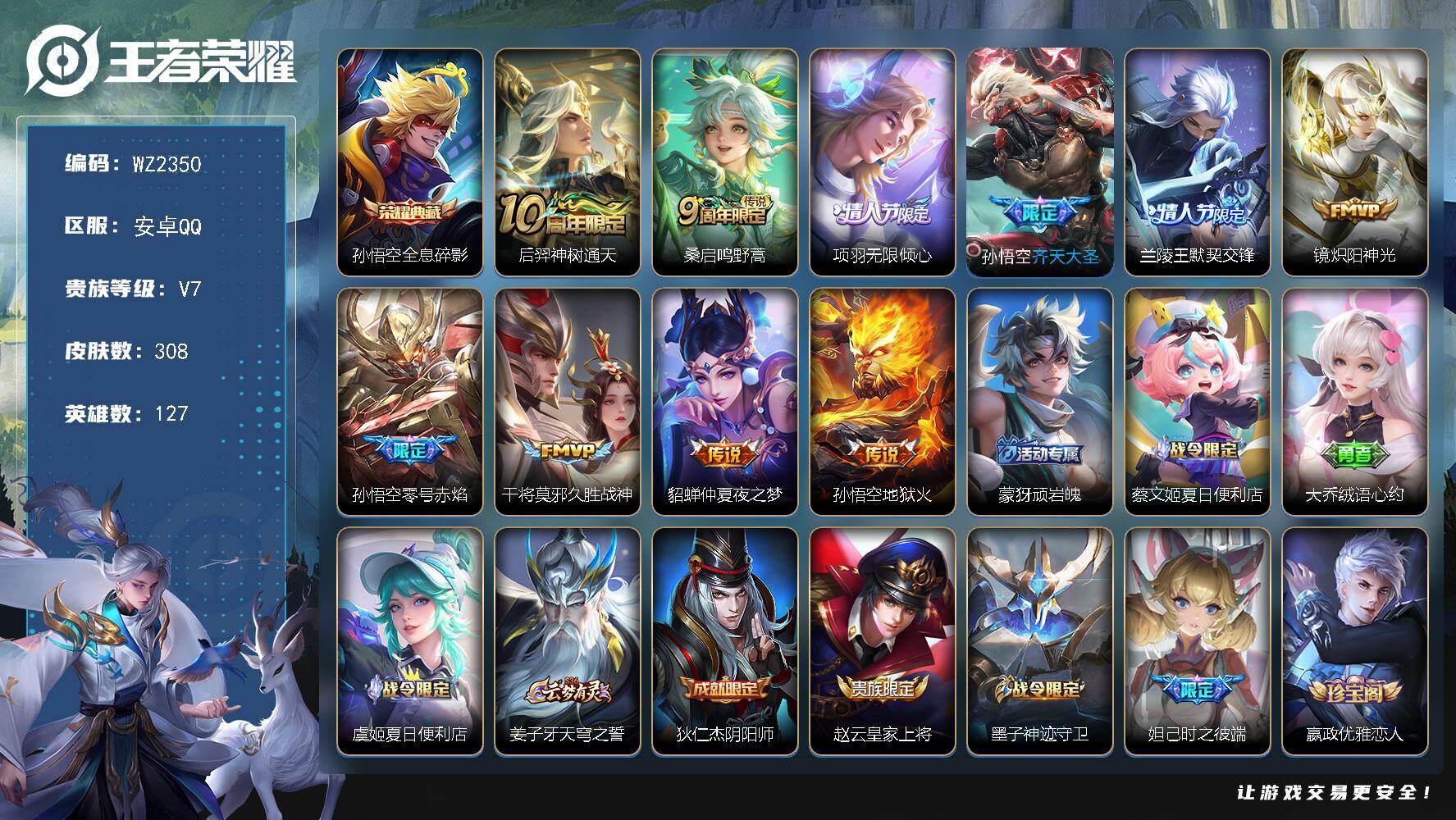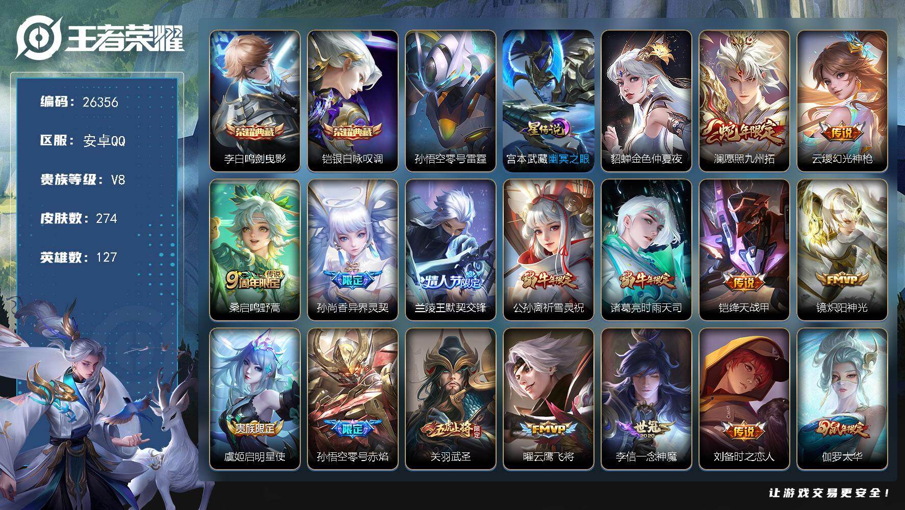 可换绑【V9极品打野号·6无双·孙悟空全皮·赵云全皮·蛇年全套·1典藏·死亡执