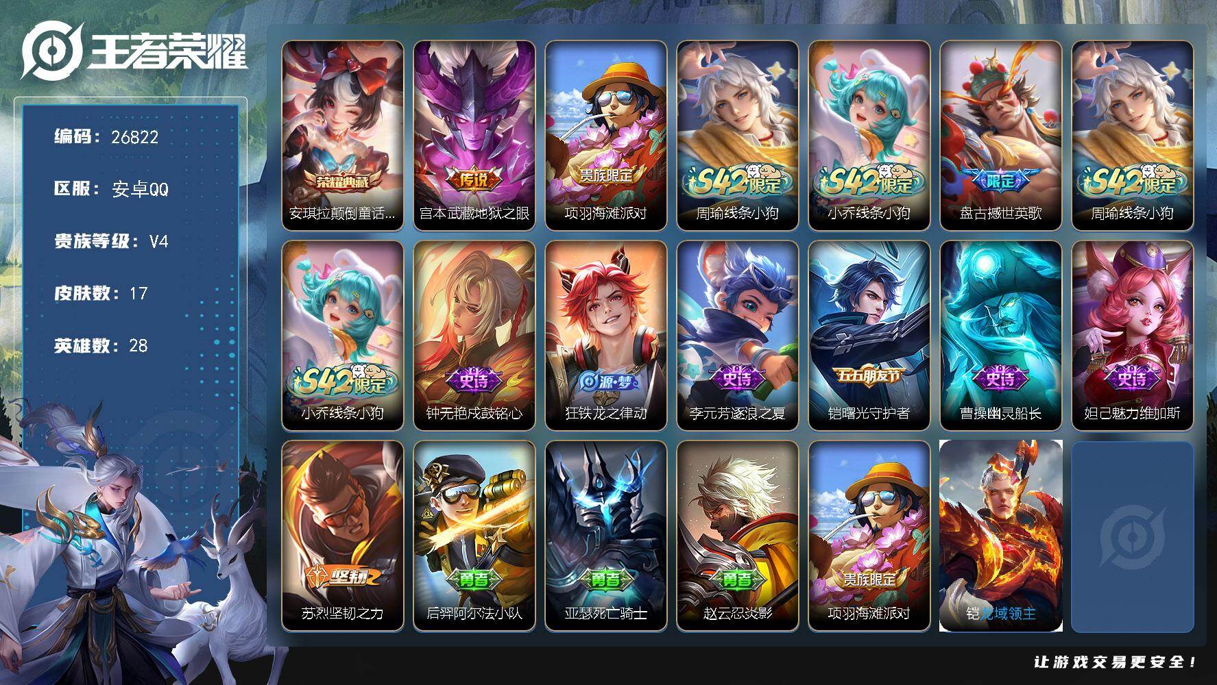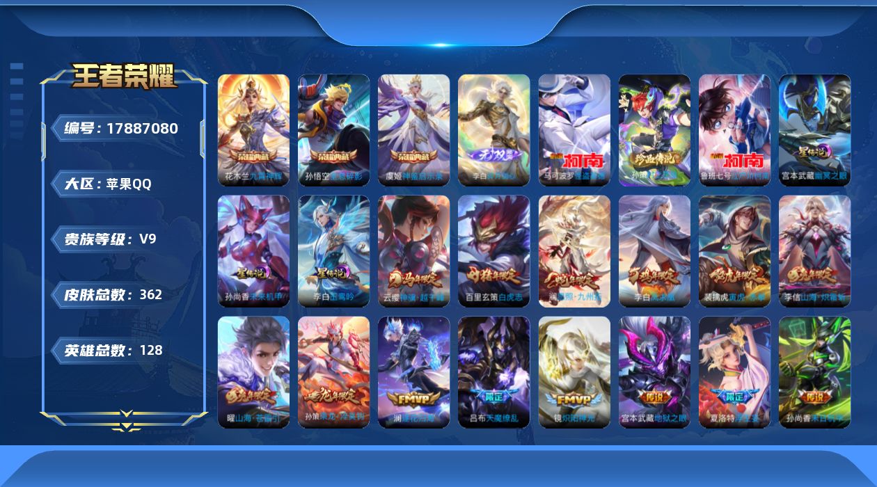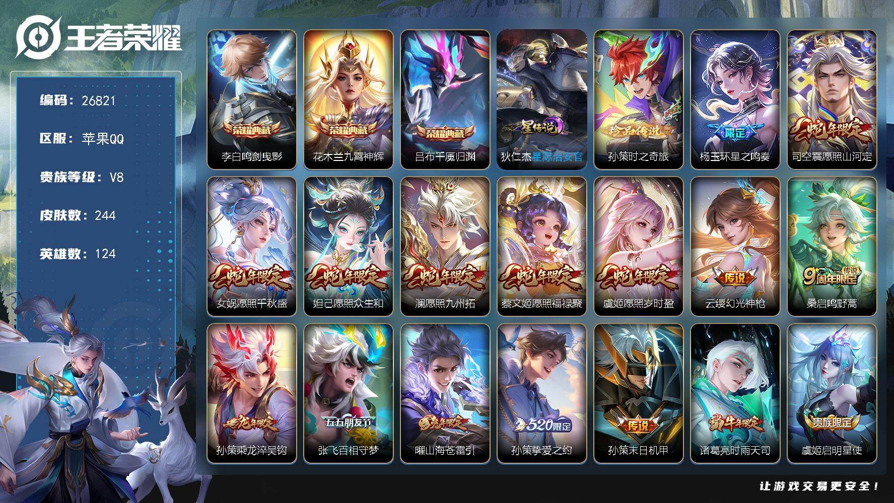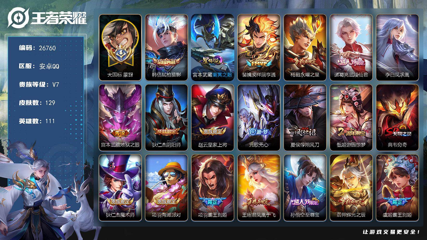 可换绑【V9极品打野号·6无双·孙悟空全皮·赵云全皮·蛇年全套·1典藏·死亡执