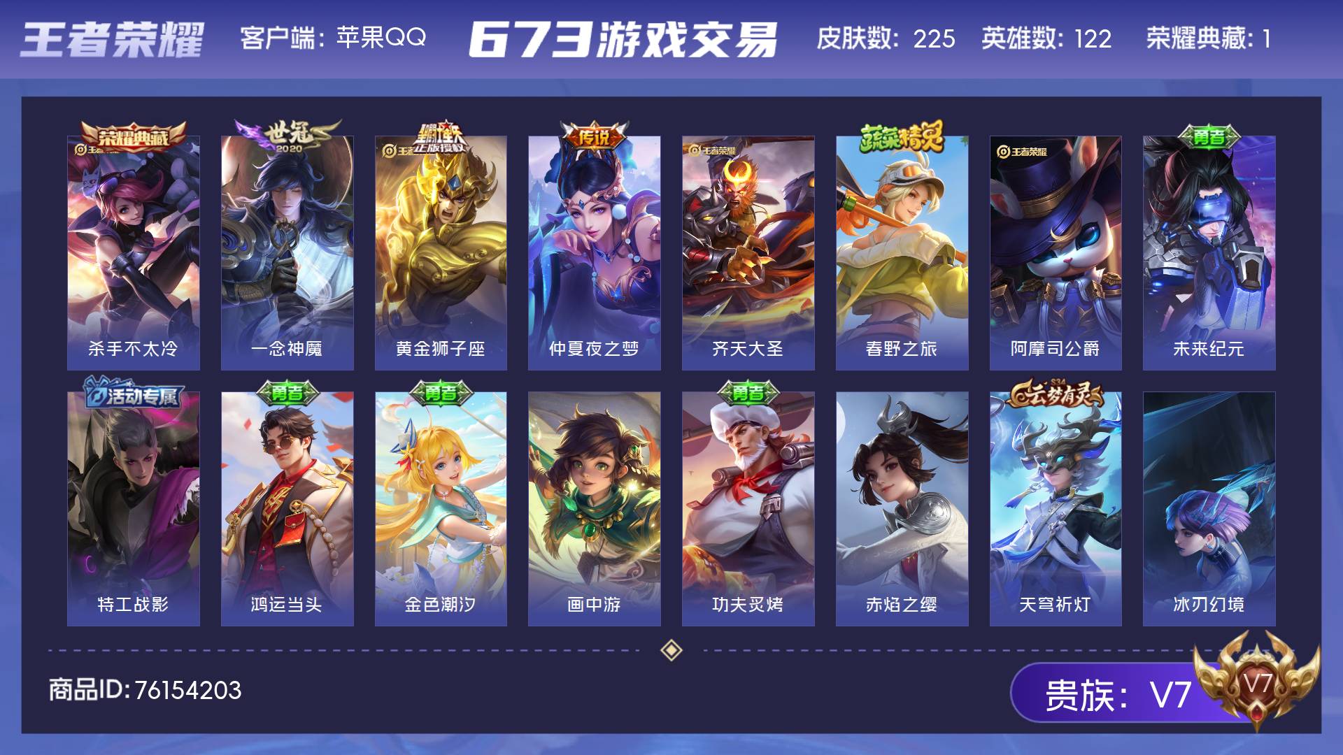 V7 皮肤225 英雄122 秩序白银 荣耀典藏1 传说4