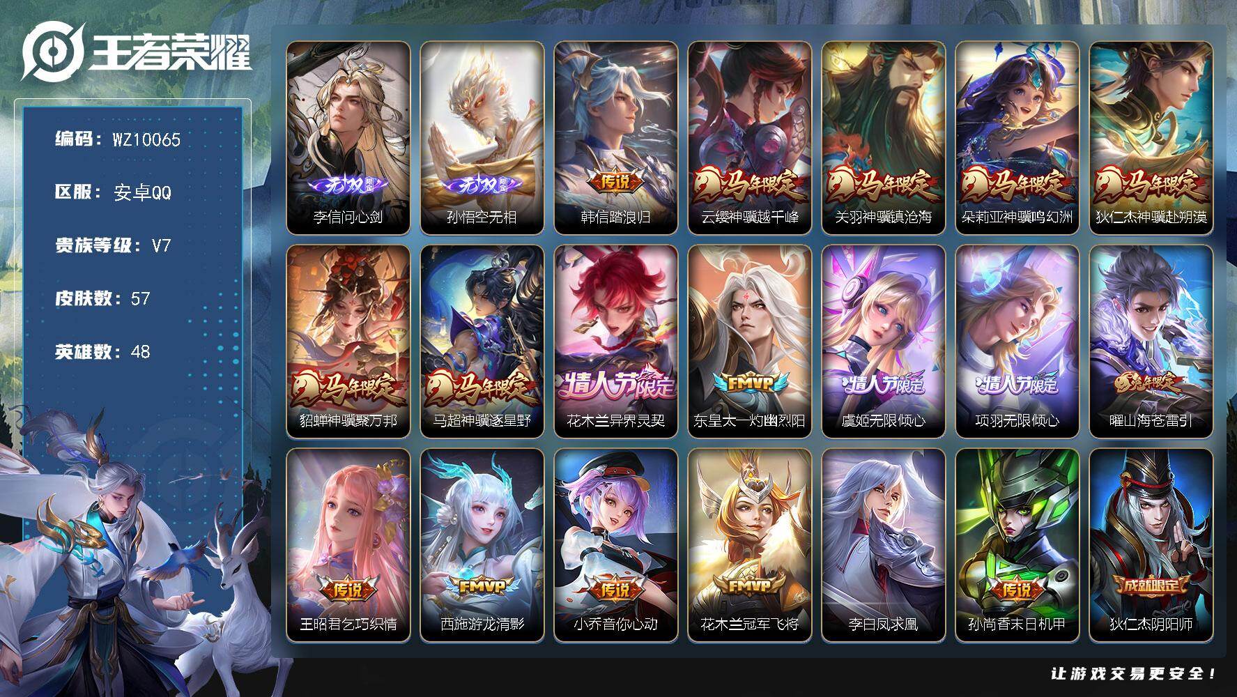 安卓Q-V7-至尊星耀II段位-48英雄-57皮肤-2无双-18传说-15史诗