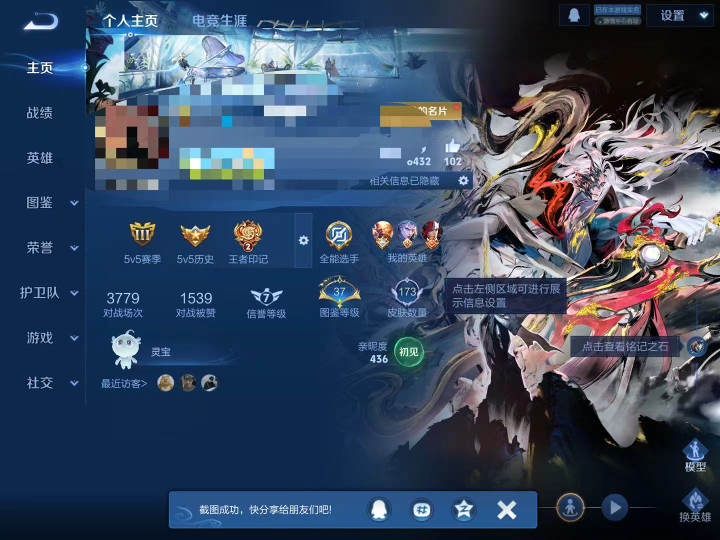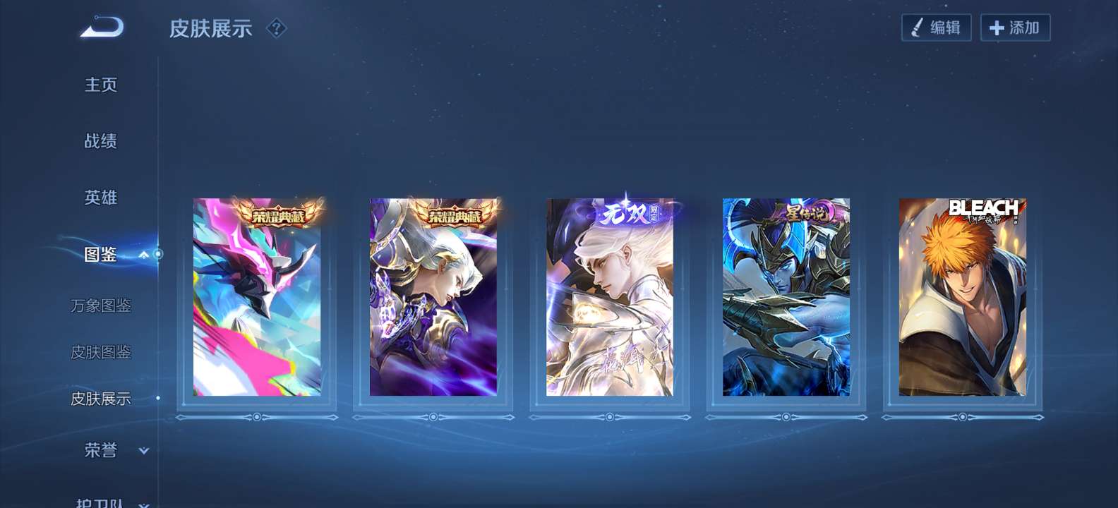 贵族7 126英雄 173皮 1无双 1珍品传说 6传说1星