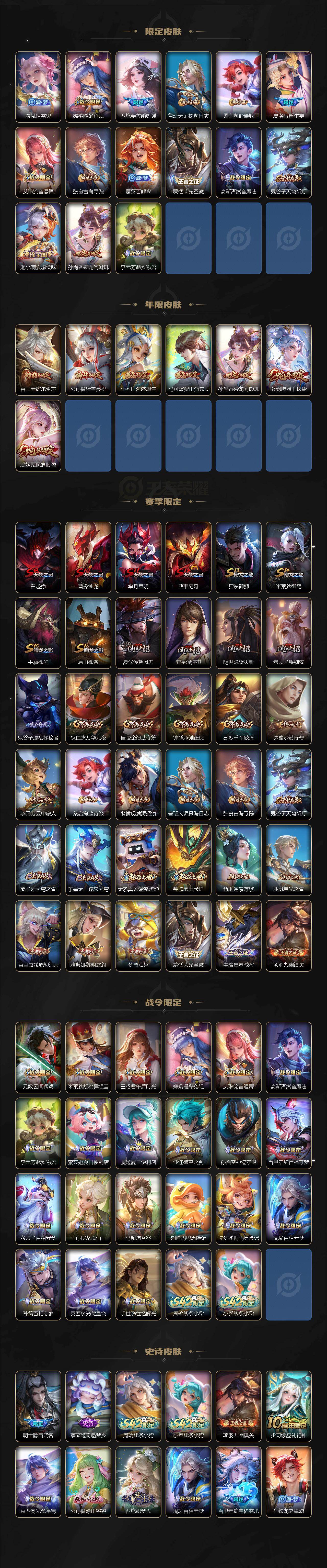 安卓v/传奇王者/431皮肤/128英雄/3典藏/1珍品无双/3无双/5珍品传说/42传说/135
