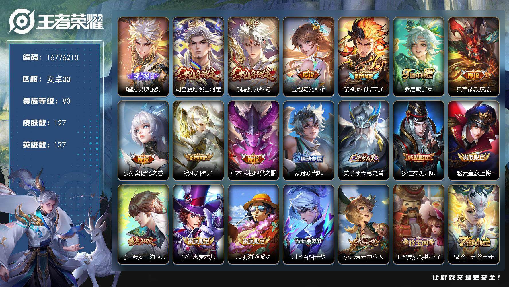 【16776210】安卓Q-V0-永恒钻石III段位-127英雄-127皮肤-