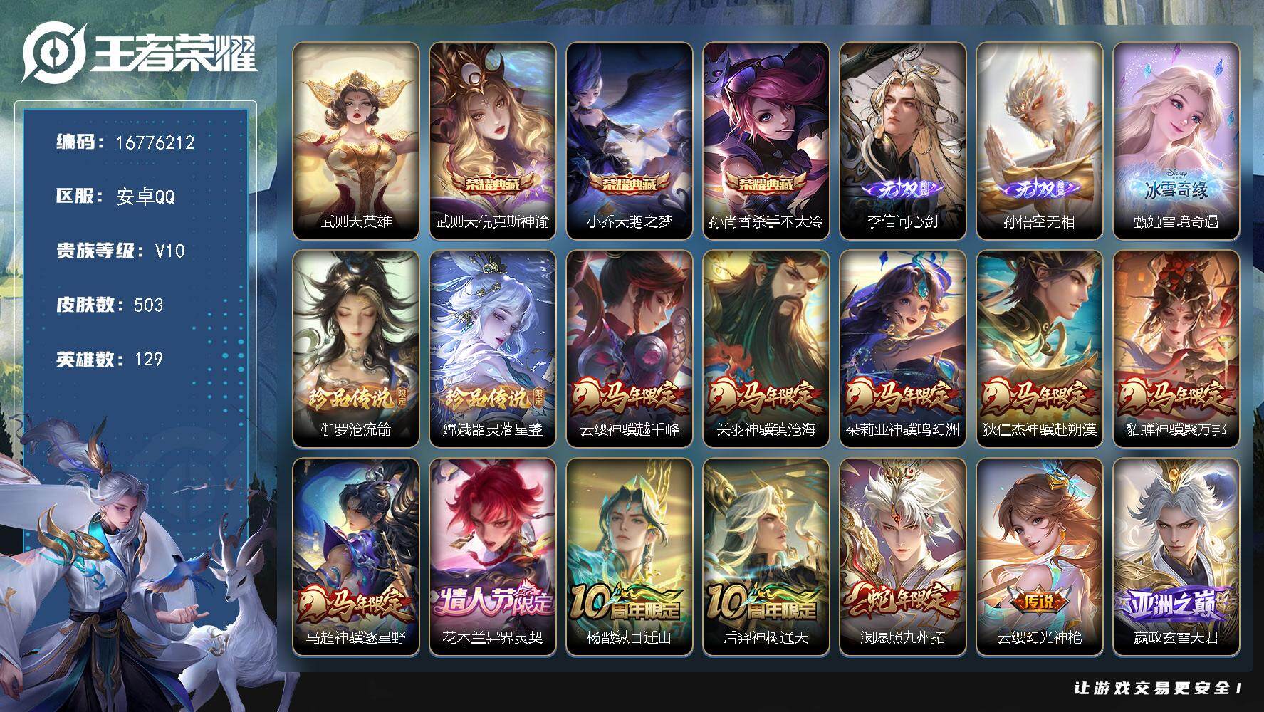 【16776212】安卓Q-V10-最强王者段位-129英雄-503皮肤-3典