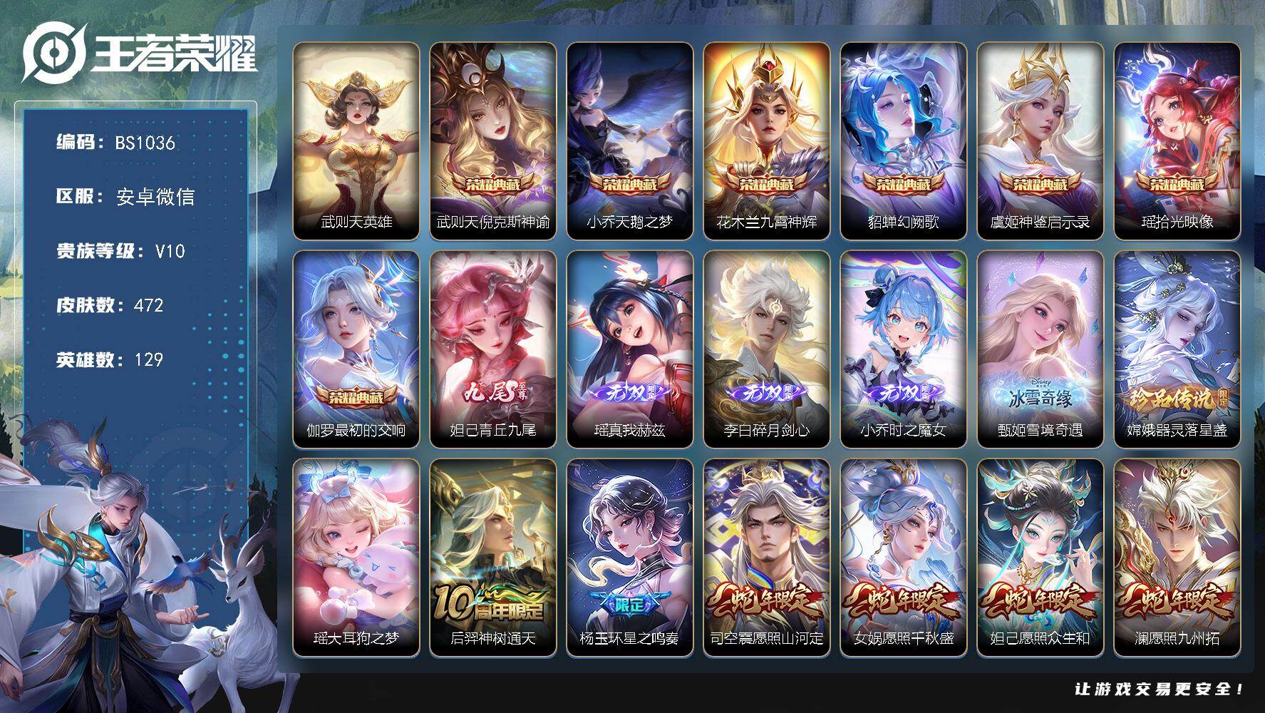 瑶全皮!小乔全皮!极品女号!V10!-最强王者段位-129英雄-472皮肤-7典