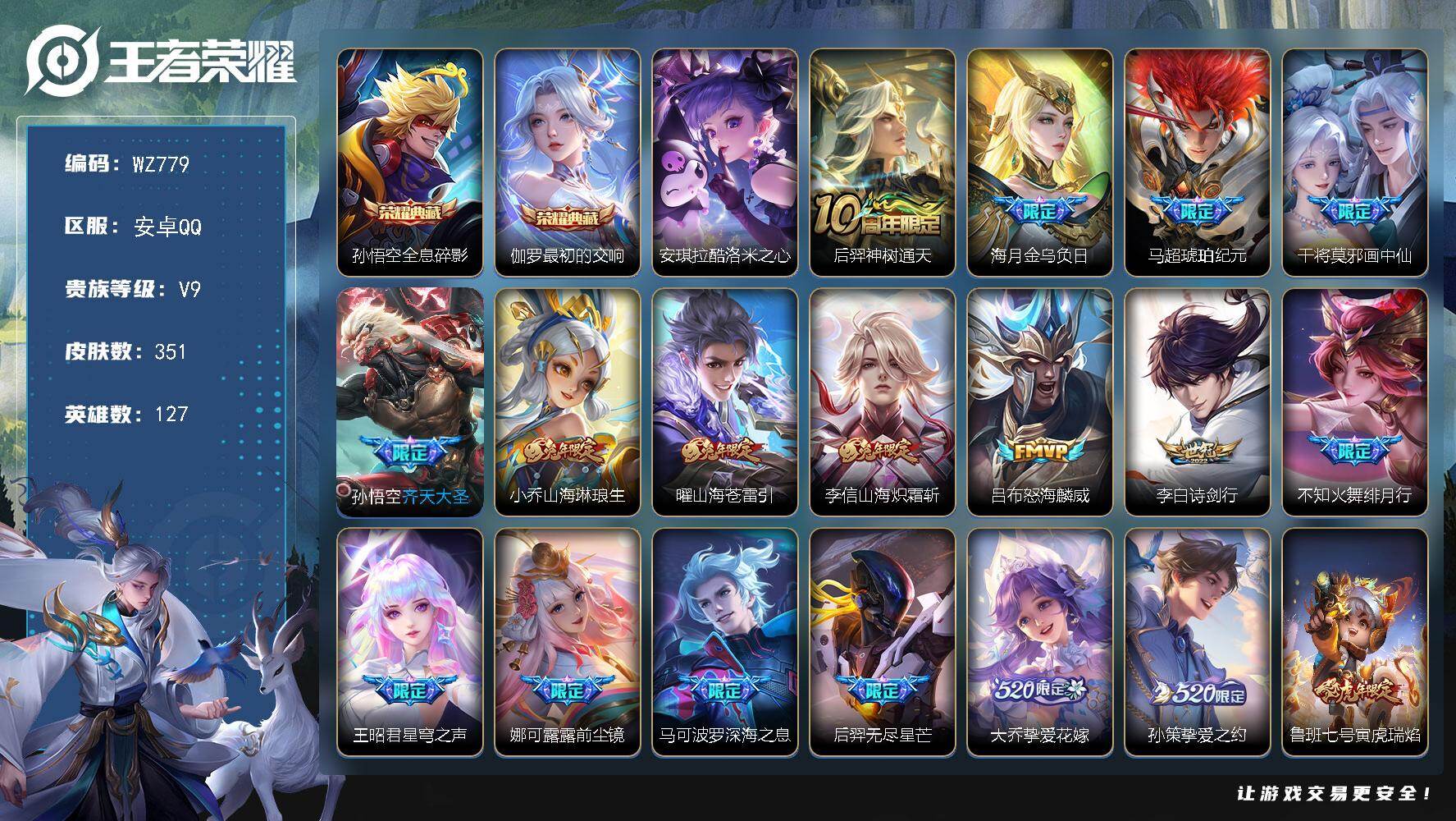 安卓Q-V9-最强王者段位-127英雄-351皮肤-2典藏皮肤-1珍品传说-2
