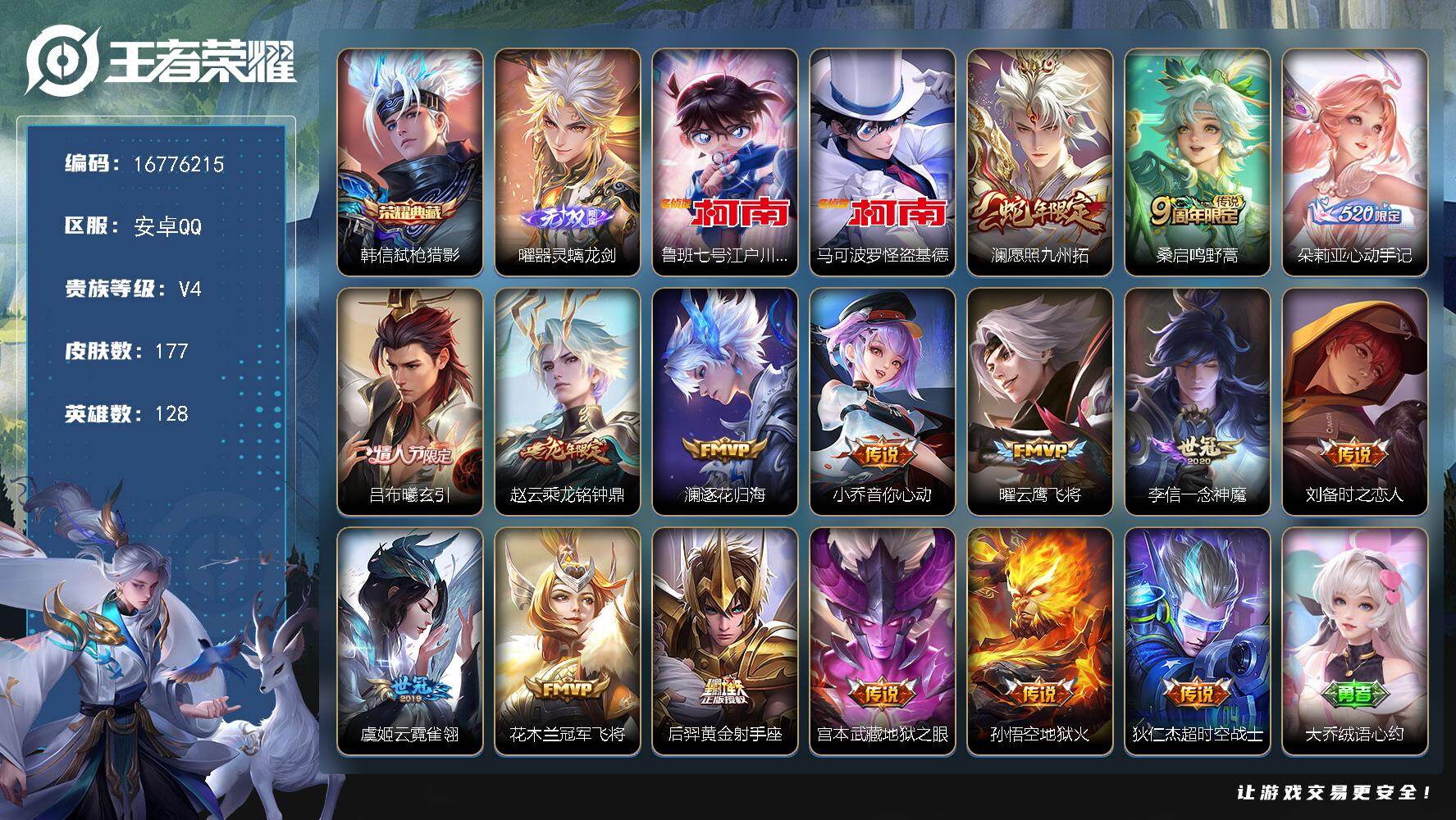 【16776215】安卓Q-V4-永恒钻石I段位-128英雄-177皮肤-1典