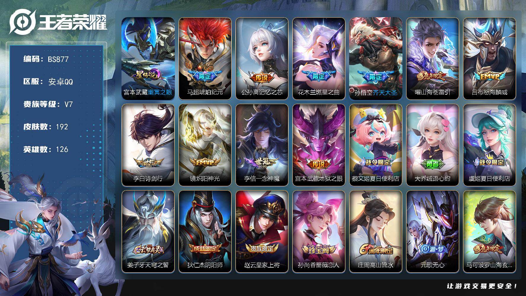 安卓Q-V7-永恒钻石I段位-126英雄-192皮肤-10传说-63限定-12