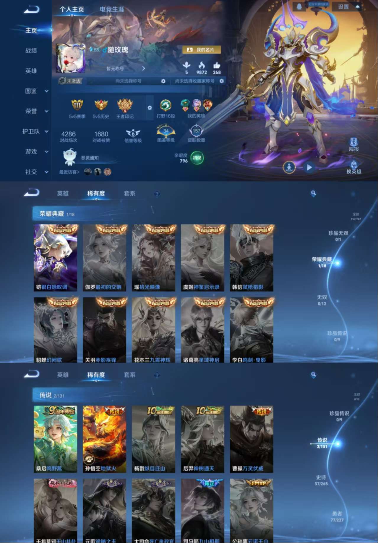 一体号- 1典藏-2传说 V5 可二 3太阳 打野16段