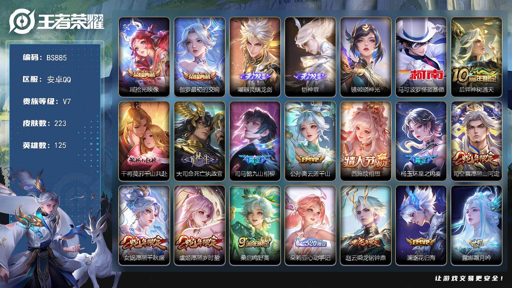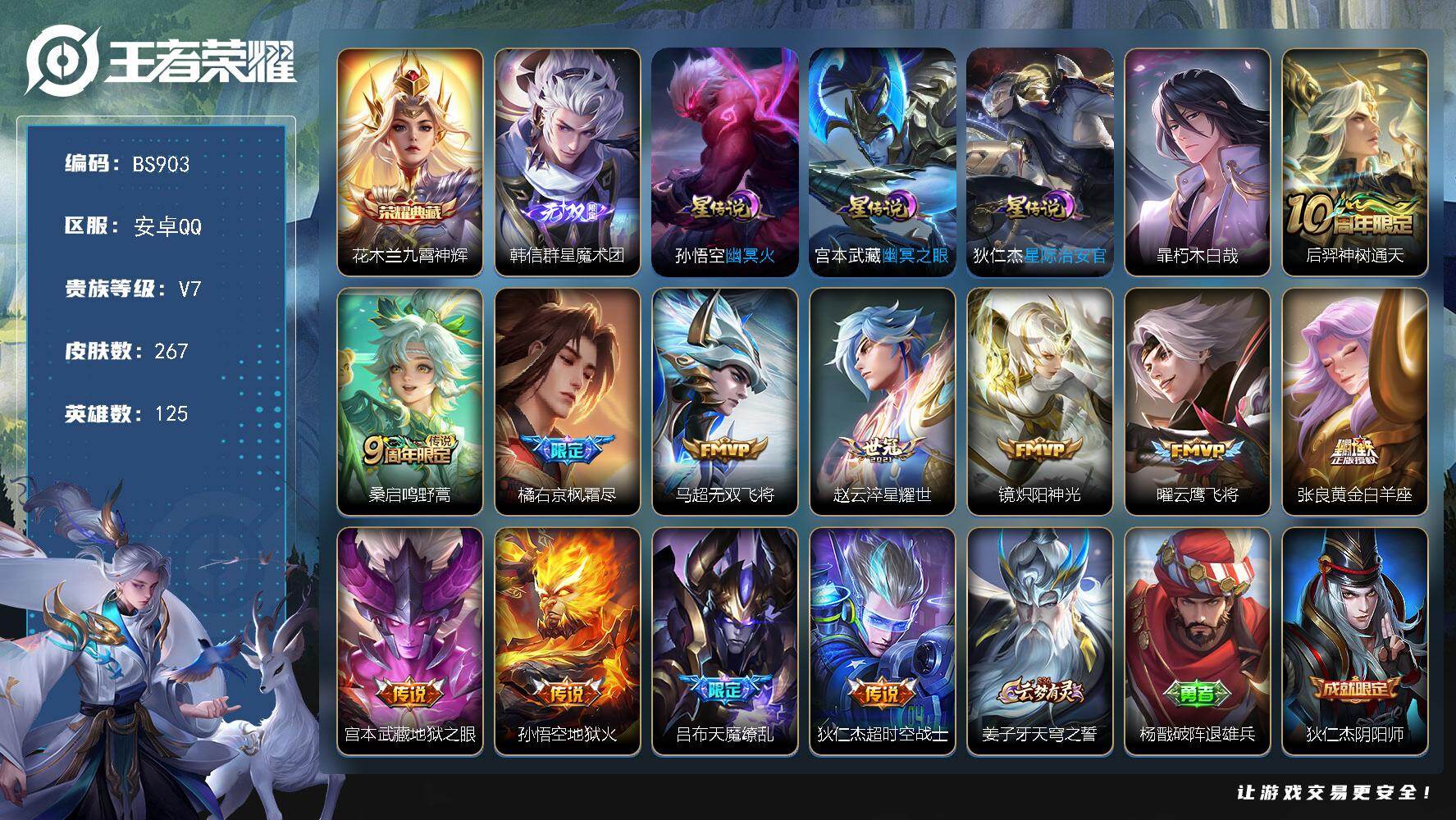 安卓Q-V8-最强王者段位-127英雄-230皮肤-2典藏皮肤-15传说-65